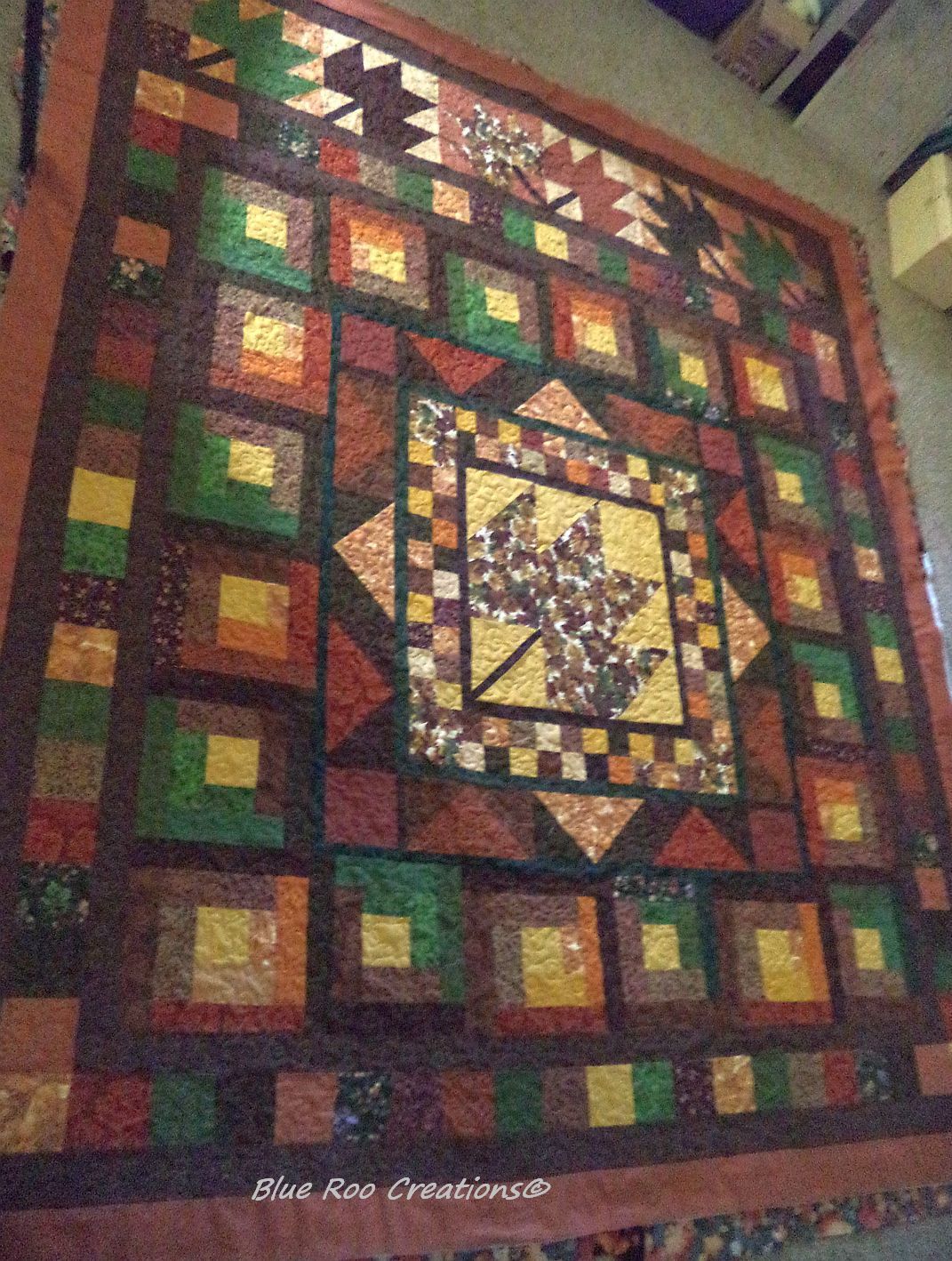 ....and I completed the quilting on this Falling Leaves autumn quilt, at last. Have to make binding and get that part out of the way.