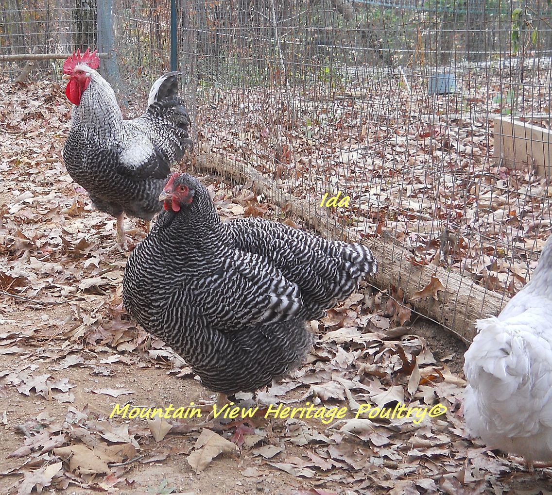 I love quality Barred Rocks. Mine is one of my best broodies. Fred wants to steal her from me, and I've thought about it, but that's as far as it has gone. This is Dusty and she's still trying to come out of her molt, so she's a bit thin.