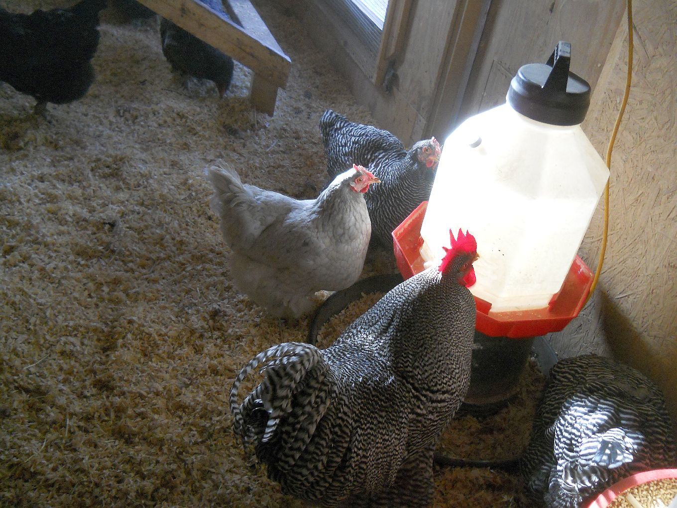 It's cold and very damp-feeling today so I never let Isaac out, not with his bad joints. Everyone else got out for awhile, long enough for Deacon to get his wattles bloody at the fence fighting with either Xander or Atlas.What a goober!![]()