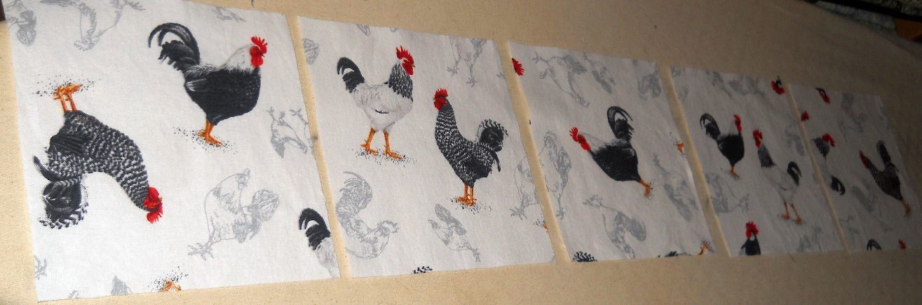 The runner will be 5 of those 15" blocks, then a narrow gold border and a red chickenwire border to complete it. My boys, can't believe I found a fabric that looks like three of them!