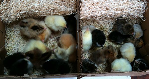 My chicks from Meyer hatchery arrived today. I ordered 2 ee's, 15 leann's adopt me bargain and one meyer meal maker.... 3 doa 3 not looking so hot.. But from what I can tell I have 2 ee's alive, 2 mottled cochins, and the rest appear to be silkies. Not 100% on the silkie part.