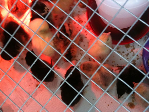 They were supposed to come tomorrow so I'm thrilled they came a day early, since the temperatures have been so brutal lately. 4 DOA (only one trampled, the others seem to have climbed to a colder part of the box and were unable to get back), and one not looking so hot. It's partially spraddle-legged from being trampled, I'd guess and it probably has a 50/50 shot. I've been babying it along and it is perkier than when they arrived but still looks bad. The rest look good! Though I had a bantam get stuck in the chick feeder and had to take it out...