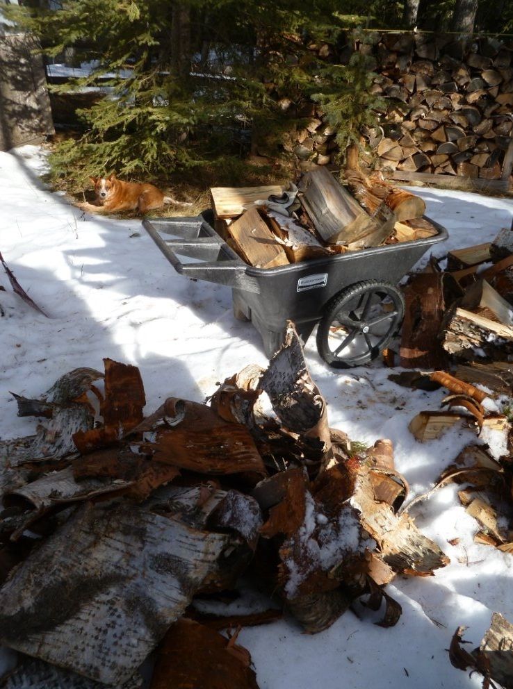 Driveway is bare gravel now, so 2-wheeled cart time has come early for us. Not sledding the firewood to the Man Porch for stacking in the wood boxes any mores.