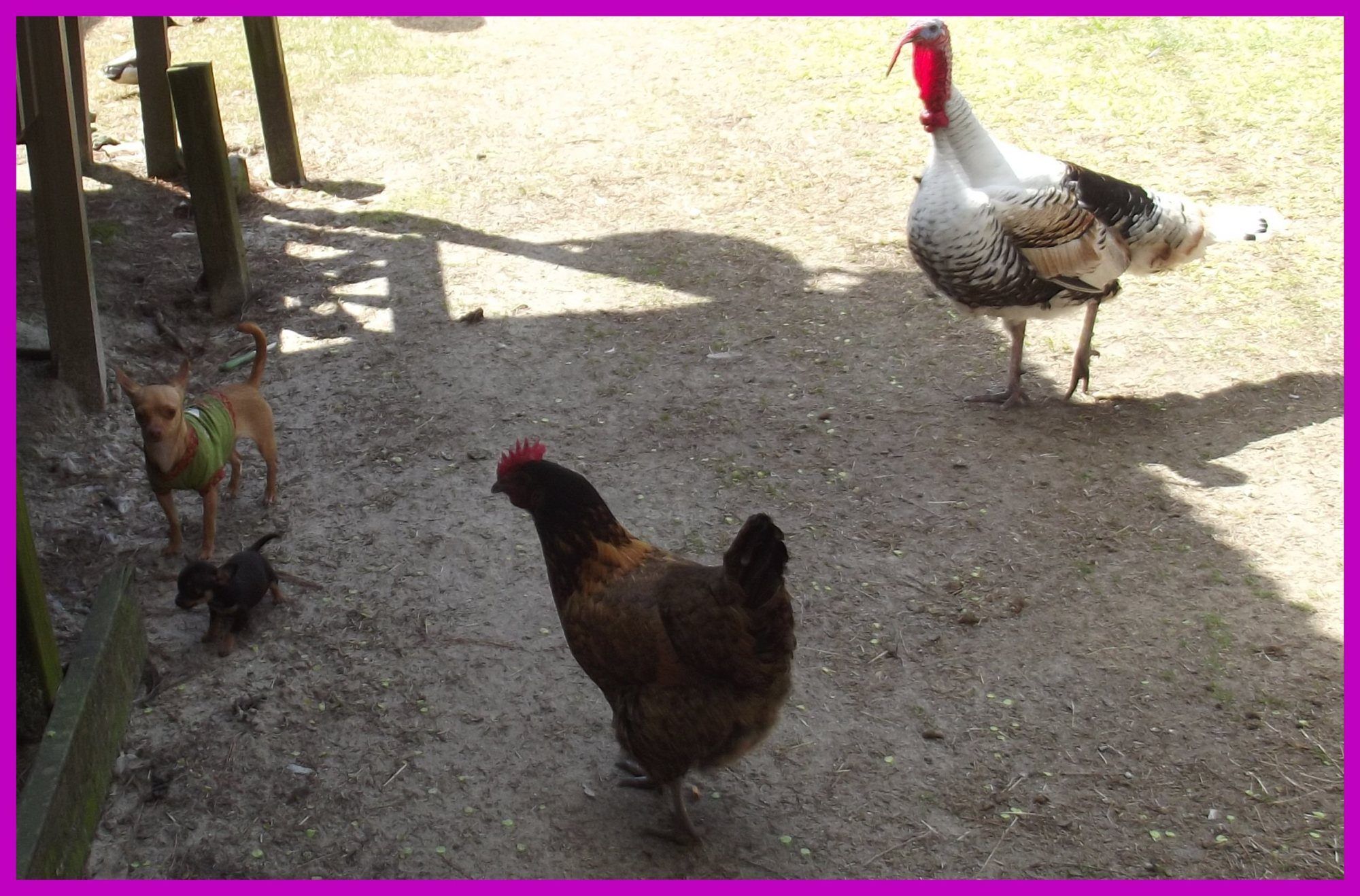 People that come over... cannot believe that my dogs don't chase the chickens, turkeys, guineas, ducks, etc.