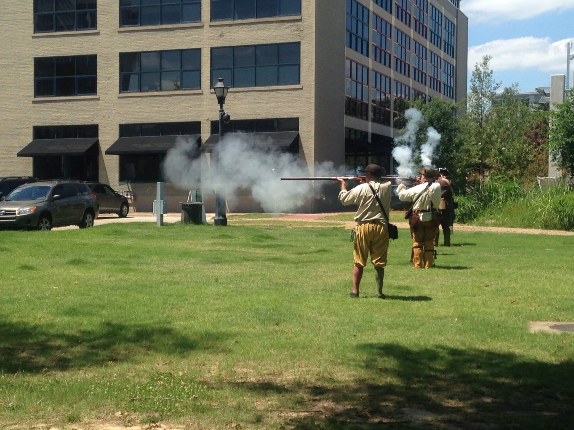 Saturday we went to Historic Arkansas Museum and watched a Revolutionary War Re-Enactment and then walked the River Market area. They had a lot of free games and food trucks and vendors out for the fourth.
