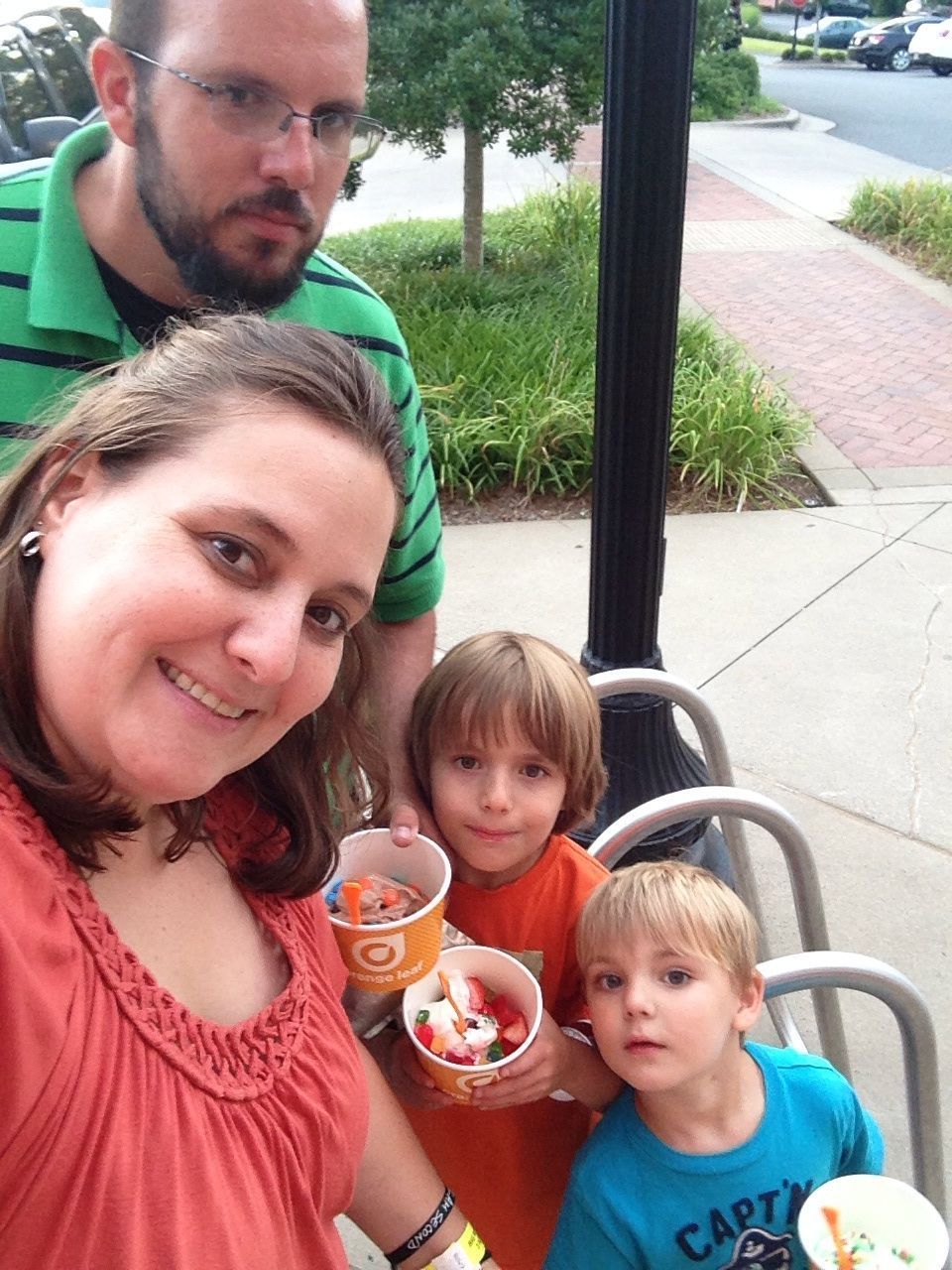 Saturday we shopped a little and took the boys to play mini golf, bumper boats, and go carts. And ended the day with yogurt!