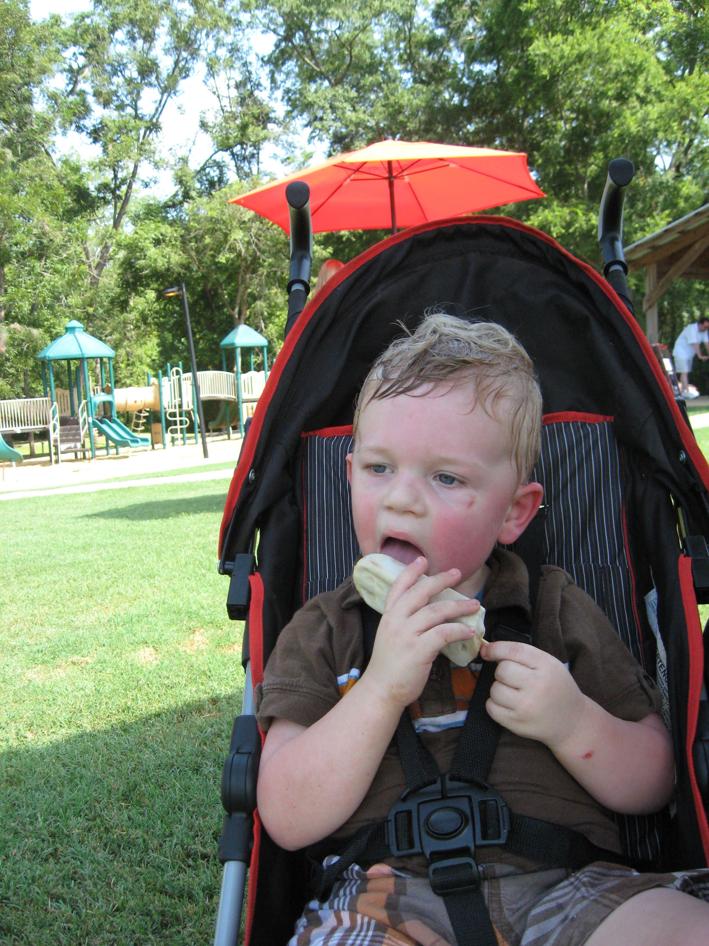 He had fun today. Inflatables in the park and a yummy popsicle.