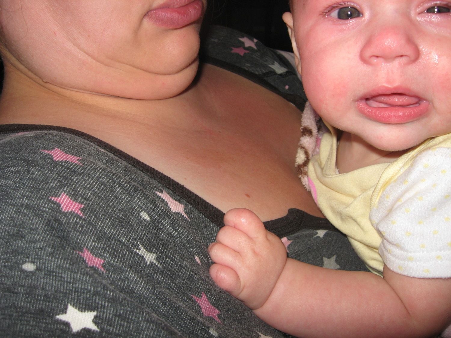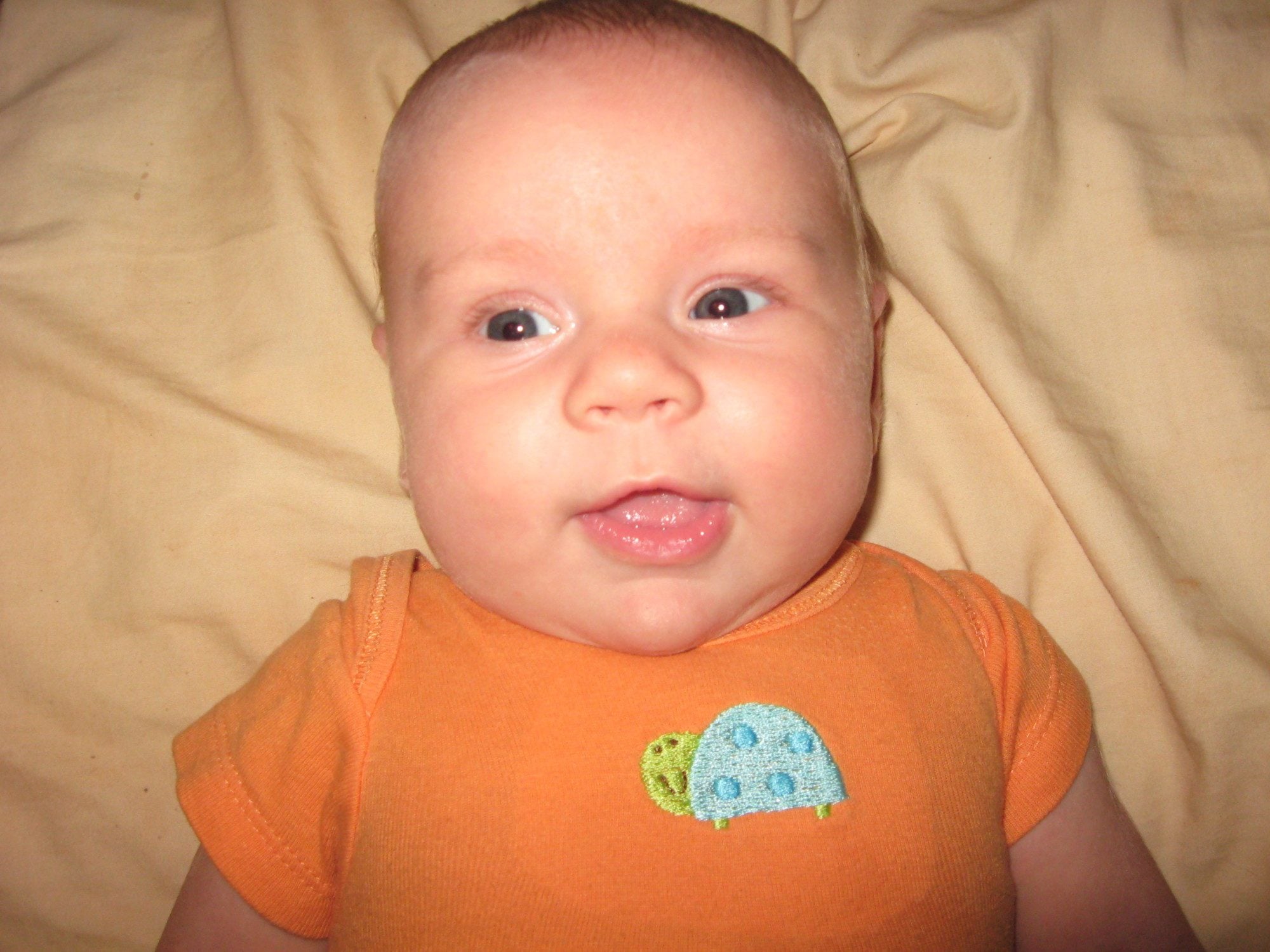 Amelia's eyes might be just like Bumbley's then. I don't think Bumbely's ever were blue though....just fluctuate between brown and green. Still do, depending on lighting and what she's wearing. Amelia's sure a little cutie pie! I just love her chubby little cheeks!