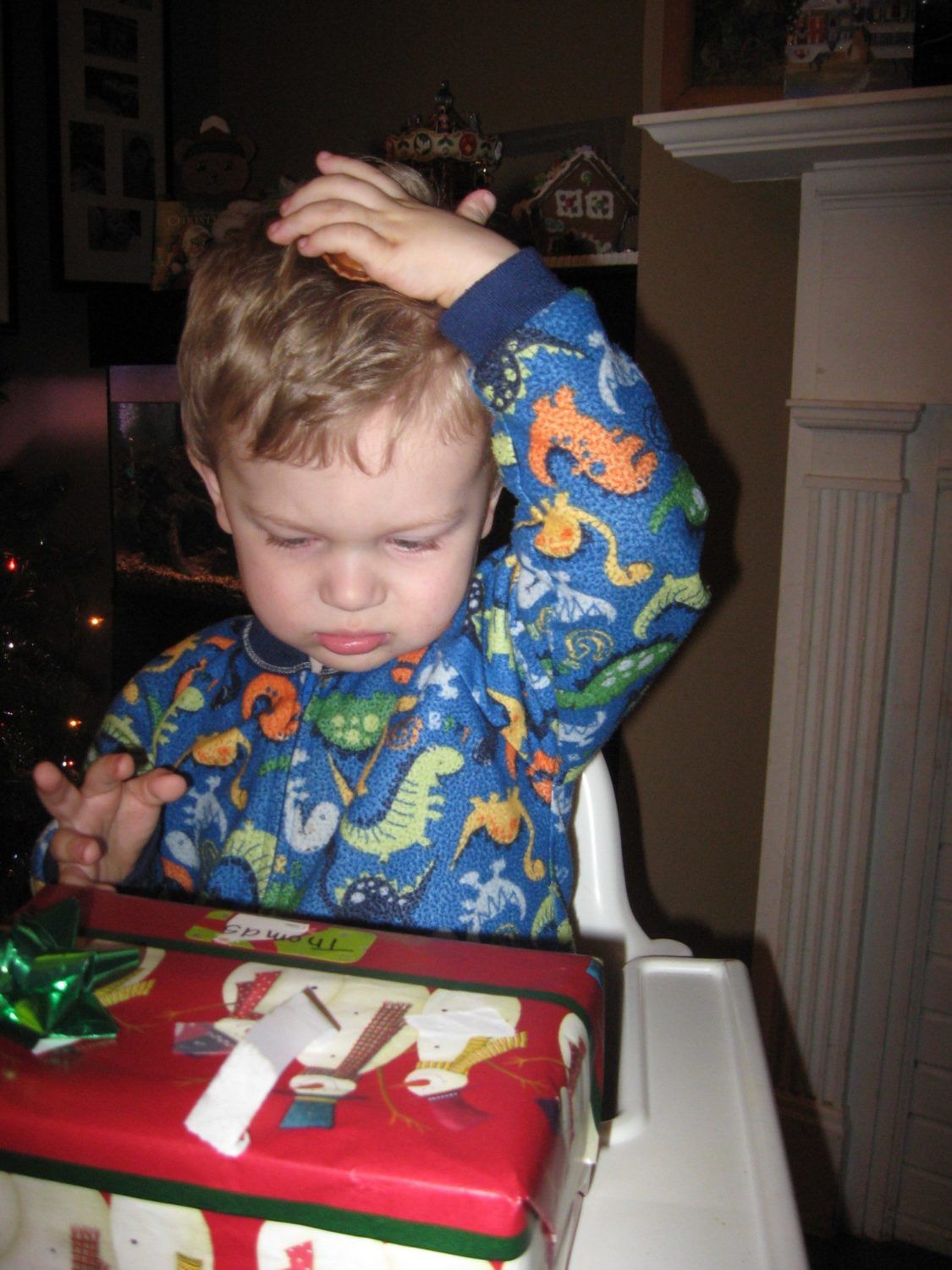 This year was much, much better. Thomas didn't throw anything (except for still wrapped gifts. He hates wrapped gifts) so that means he wasn't crazy overwhelmed.