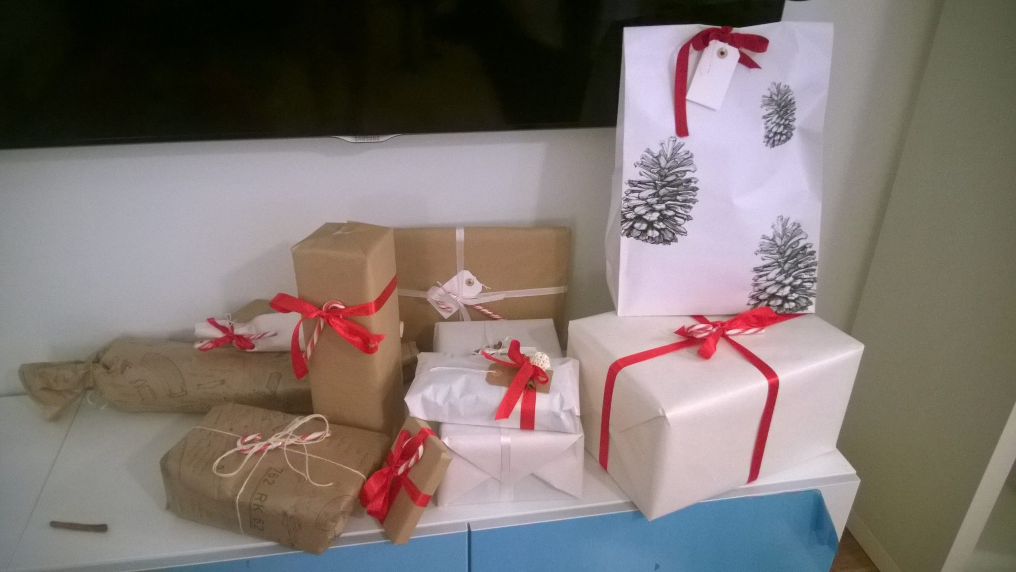 The presents she wrapped had all been moved into different boxes so no one knew what was what. Youb should have seen their faces when they thought they knew what they were openingDecent quality wrapping paper can be used MANY times if you you unwrap rather than tear into the gift. What was on a BIG package might be on a somewhat smaller one in the future and so on until "little things come in small packages". There was familiar paper under the tree this year that was new probably > 10 years ago.