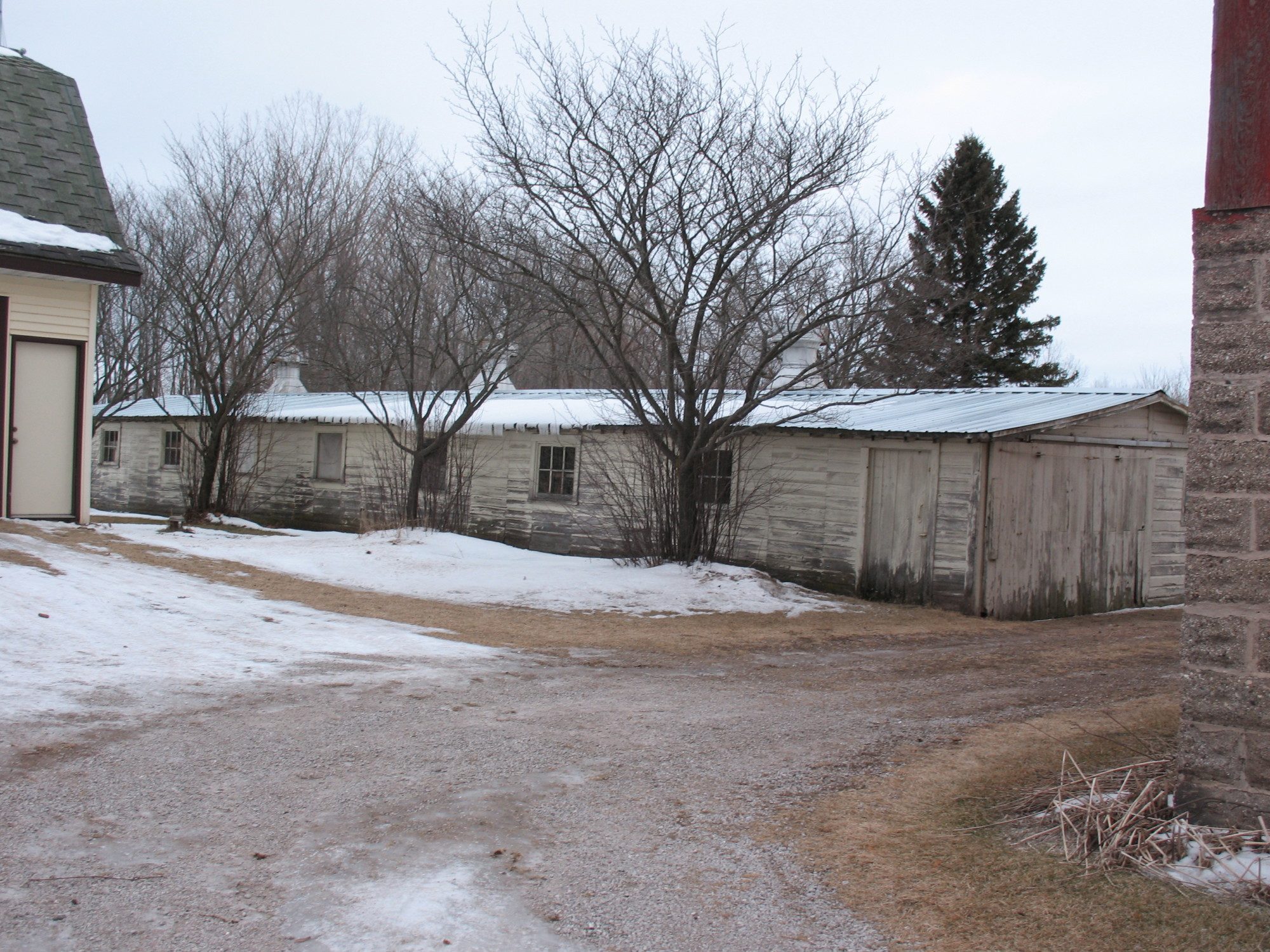 This is the building that DH says I can use for chickens. As you can see, it is pretty short - maybe 6 feet at the sidewall on this side which faces south. the north side is shorter with no windows, but it has a number of animal doors which have been closed off.