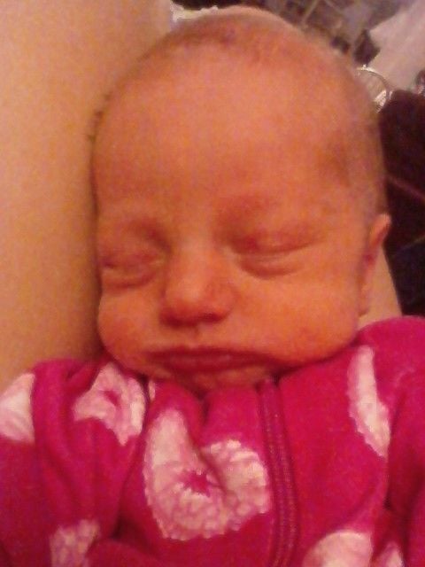 She is just beautiful!Alrighty, this is going to be long so you may want to grab a drink and a snack! This is also going to make me sound awful, so please don't be judgmental! You have to consider that I had a really full plate, and not much family help.... also, my grandfather on my mom's side passed away not long before we found out we were pregnant. (not the one that whipped me for sitting on the banister, but the other one) Miss Kelsey Madalyn was a major surprise. We thought we were finished after Abby was born, but the Good Lord had other plans. I was so upset because I already had 3 little ones, and I was overwhelmed. I didn't know how I was going to manage another baby. For the first month or so, I was resentful and upset... Then I started having some problems, and felt like it was my fault because I didn't really want the baby... Each of my pregnancies got progressively harder on my, and I had more issues with each one. So, anyway early in the pregnancy at about 10 weeks I found out that I had a subchorionic hemorrhage, which is basically a bleed where the placenta attaches. So, here I was with a complicated pregnancy, a 6 month old, a 3 year old and a 4 year old.... then they decided to put me on bed rest. At this point I didn't have a lot of help and was trying to limit my activities as much as possible, but bed rest was impossible at that point. Until about 22 weeks, it was back and forth between bleeding and bed rest, with multiple ultrasounds to monitor the bleed. The bleed finally clotted off around 20 weeks, and 2 weeks later they let me off bed rest. I had 6 weeks of "Normal" pregnancy. Then at 28 weeks I started bleeding and having contractions. So... back on bed-rest I went. At that point the doctor basically told me that it was up to me how long I was going to carry the baby, and that I needed to make arrangements to help with the older kids and the household chores. At that point, my mom, mother-in-law and sister-in-law took turns staying with me and the kids and helping out with the house. That was stressful in itself, because I wasn't use to having someone in my house all the time, and part of the time, the kids went and stayed with them at their houses. On top of that I had to keep going in and out of the hospital. It was a very scary time! Then on the day that I got to 33 weeks we went to bed, and my water broke. So, here we go to the hospital. Once there, they did the test to make sure that it was for sure my water breaking, and it was. They started me on Magnesium to stop the contractions and said that they weren't capable to deal with a preemie that young.... So because we live in a rural area, I got shipped down to a bigger hospital an hour away. I got there, and everything was chaotic to begin with..... They stopped the Mag, and said that if I went into labor they weren't going to stop it, but that if I didn't go into labor they were going to induce me at 34 weeks.... I was not allowed to get out of the bed for ANYTHING except to go to the bathroom, and I had to have a nurse with me then. Because of having to stay in a bed for weeks, I had so many issues it wasn't funny.... I ended up having to have a hemorrhoidectomy, because sitting on your fanny, in a hard hospital bed, for weeks on end leads to um... *ahem* swelling.... and when it gets bad enough it can cause blood supply to be cut off... anyway......That was on Wed... I was having irregular contractions that entire week, but LATE Friday night they started getting more regular... They decided to start Pitocin and induce me at about 1 am Saturday morning. They did that, and everything went to crap! Everything was great until I had to go to the bathroom... then the baby's heart rate would drop. After several decelerations they came in to check me and figured out that she was presenting face first instead of crown first.... So, to try and get her to move, they stopped the pitocin and put the head of my bed down... It worked, amazingly, and she tucked her chin. Unfortunately, she was still having decels, anytime I had to go potty. Hubby was asleep on the couch when the main Dr came in and said that we were going for an emergency C-section because she was stressing for some reason, and they didn't know why. So, they wake my husband up... tell him to pack our stuff, because we weren't going to be coming back to that room and get ready to go to the OR. They went ahead and took me down. The nurse brought him down there, and he was waiting in the hall for them to come get him.... Meanwhile, I was in the OR, scared, alone, and not knowing what was going on. They gave me a spinal and was trying to get it to take. They kept wiping my belly with alcohol wipes and I wasn't getting numb. Baby was starting to stress with every contraction and they decided they didn't have time to wait on the spinal. Sometime during all that someone had stuck their head out and told Hubby that as soon as they got the spinal in, that they would come get him..... Anyway, they had to put me under general anesthesia, and he heard the baby cry while he was sitting in the hallway. They let him in, and I was still out on the table. He got to hold her for like 30 seconds, and they took her to the NICU. He was told that she kept stressing because her cord was wrapped around her shoulders and my full-bladder kept her from pinching her cord, but as soon as my bladder was empty and she started into the birth canal, her cord would be pinched and she would go into decels. He spent the day going back and forth between recovery for me and the NICU for her! She was born sometime around 7 in the morning (I couldn't tell you exactly because it was so crazy!) and I woke up sometime around 2, to a nurse mashing on my belly right at the C-section incision. I was SCREAMING! Hubby said that he has never seen me like that, even when the others were born. I couldn't move.... Once I was awake, they were moving me to my room and asked if I wanted to see my baby...