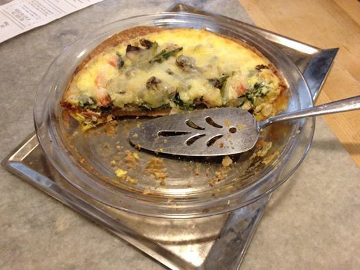 And this is a 4-serving quiche. It has all kinds of things in it ... onions, mushrooms, asparagus, salmon, cheese. Mmmmmmm!