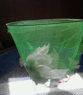 LOL.... LOVe it. I bought a Bait and landing net at Walmart. I left it where the goats could nibble on it so some of the holes are a bit larger than I would like but it still caught grown chickens When I restring it I am going to use a finer mesh like yours and make it deeper so when the bird goes in the mesh will help keep them from struggling.