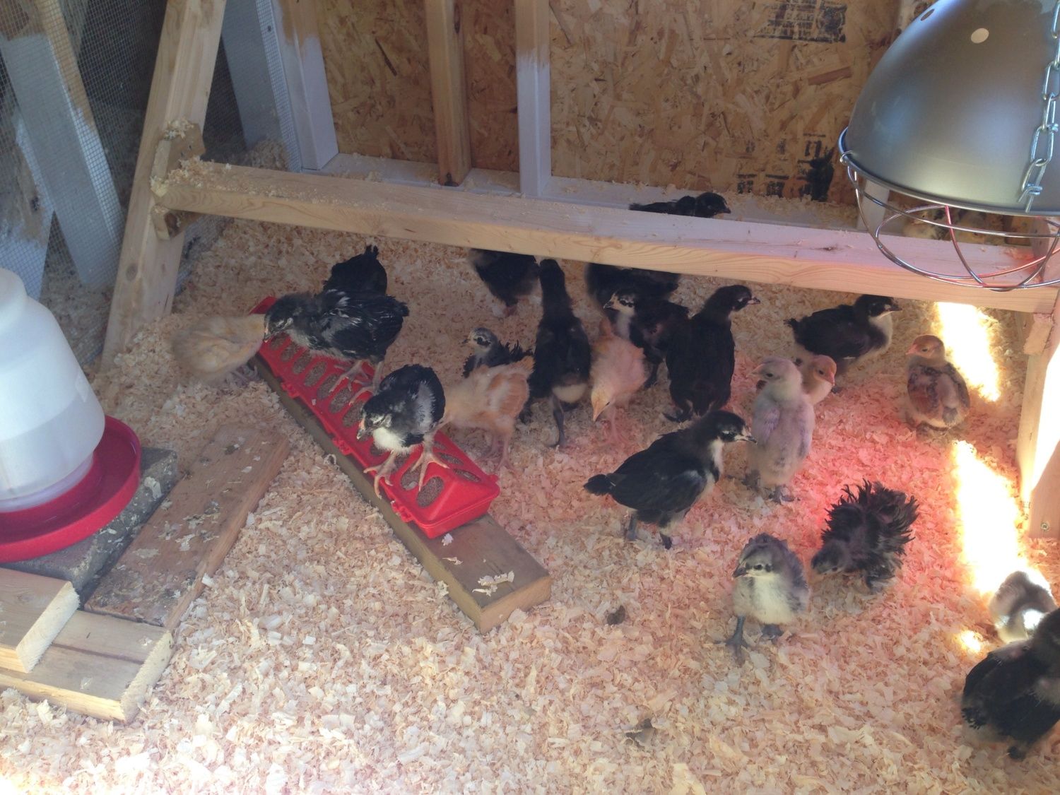 Need to add a couple more roosts, adult feeder and waterer and we'll be good to go. I'm hoping out of these 25 chicks that I get at least 15 pullets ... Fingers crossed !![]()