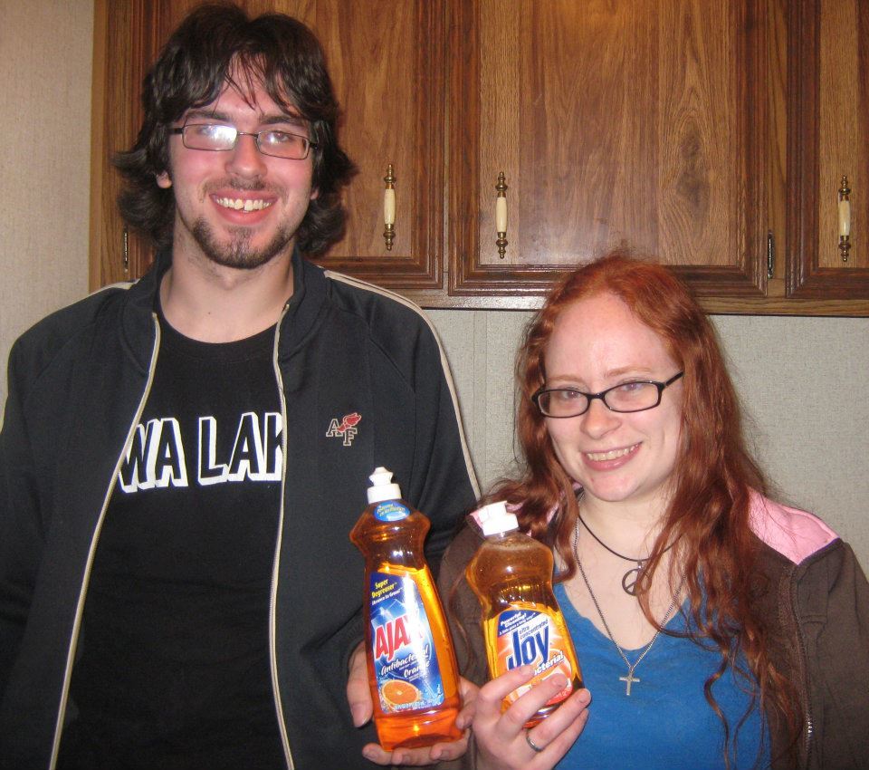 When he was little we all called him "AJ". Somehow that got corrupted into "Ajax", which we all called him for years. So he proposed to Joy by buying them each a bottle of dishwashing liquid, his way of telling her that from that day forward they would work together as a Dream Team.