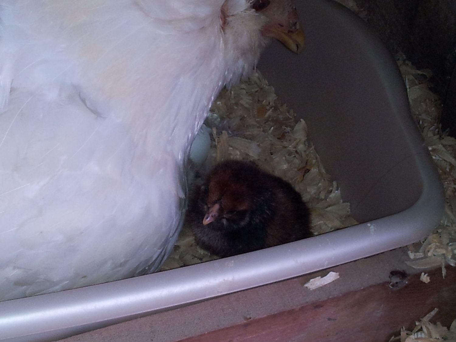 Day 20 on the rookie broody experiment… and we have babies! I am so in awe! There are at least 6/12 right now! I can not believe it!!