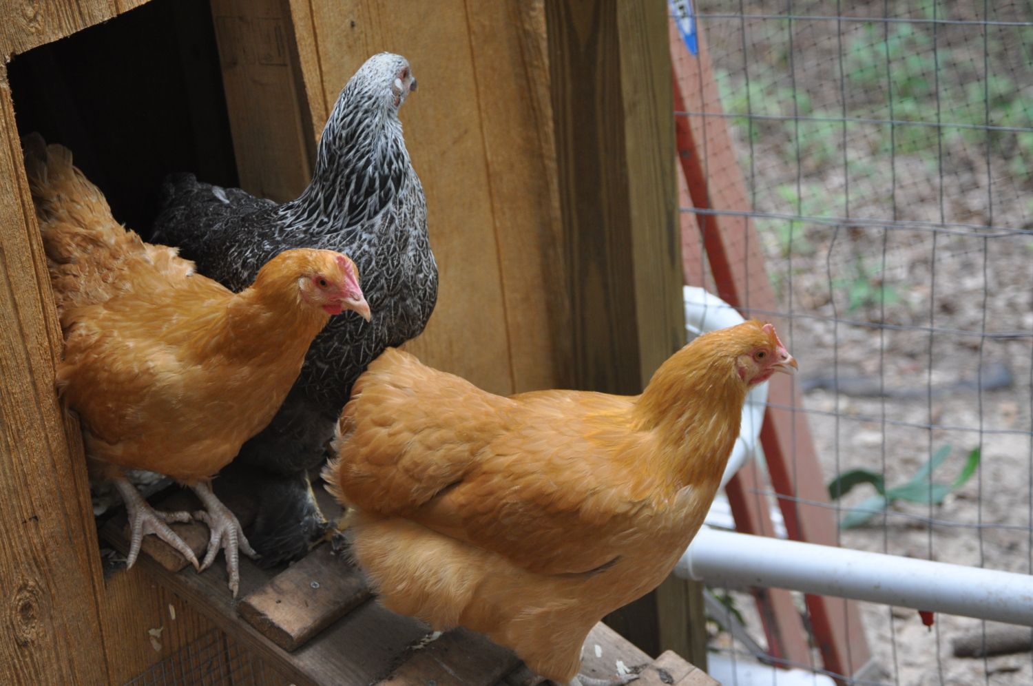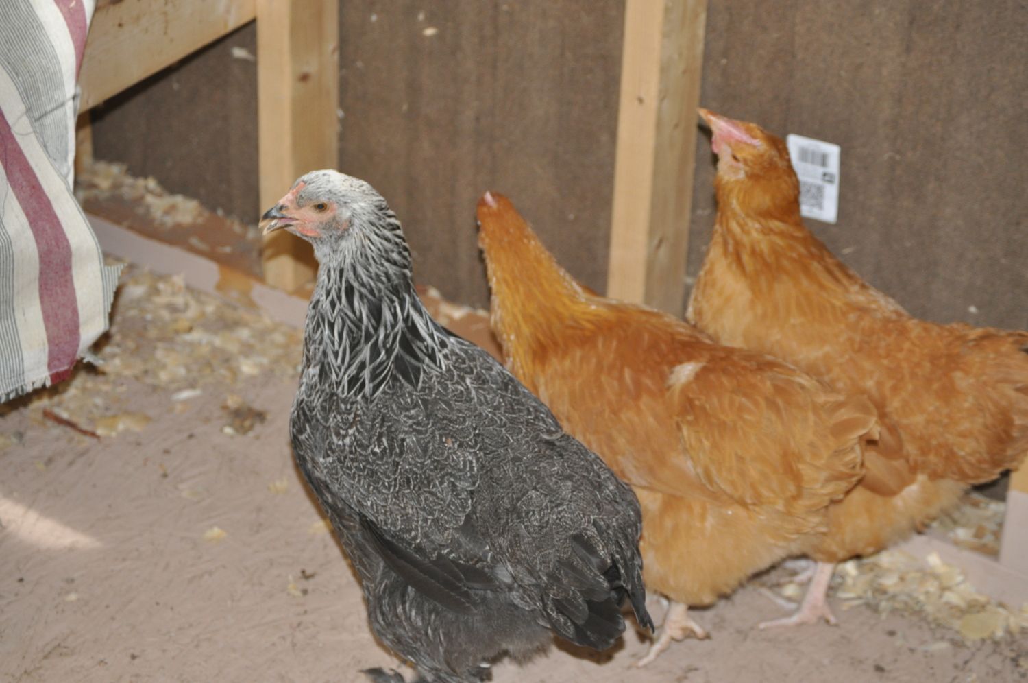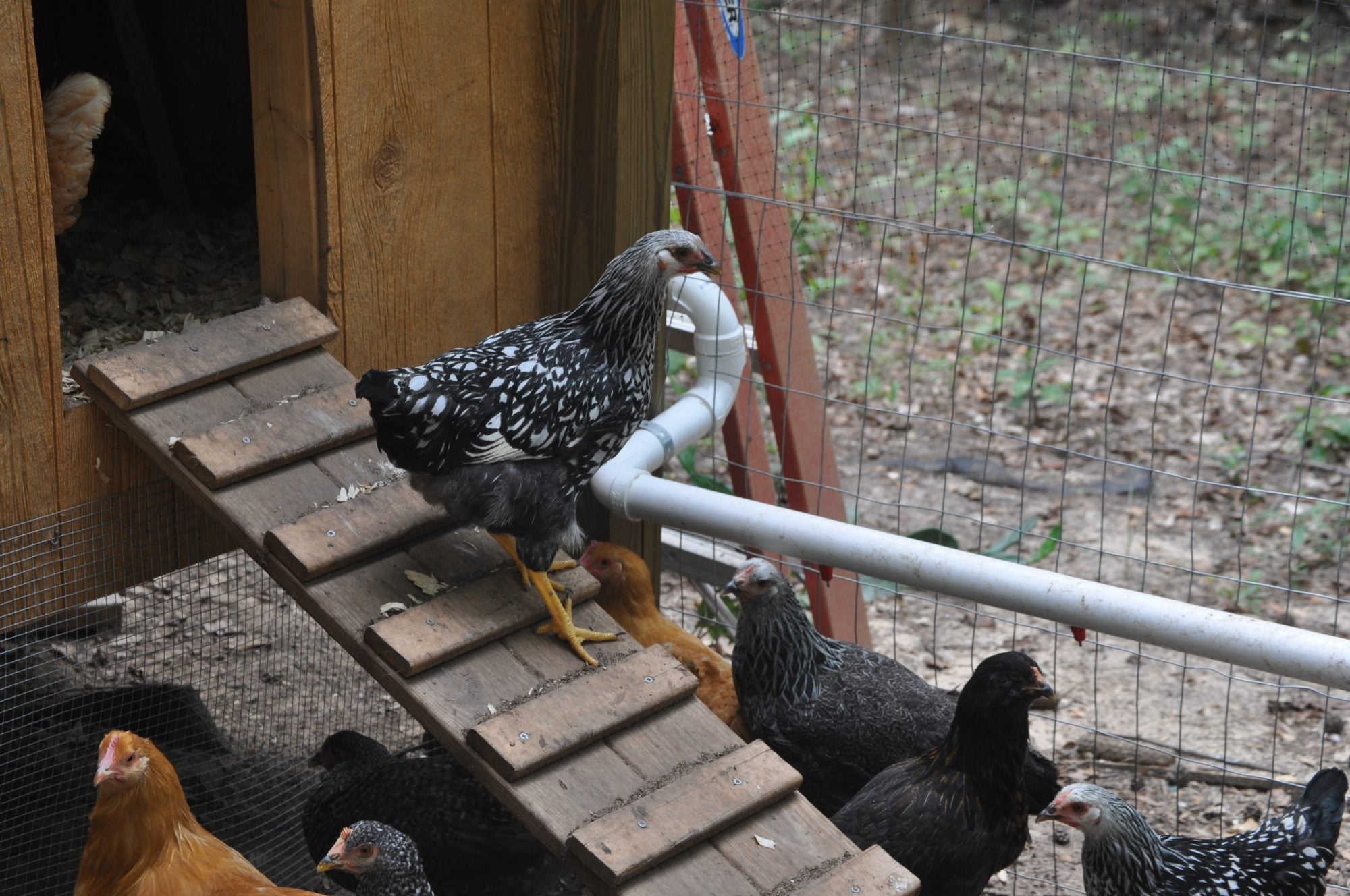 Their favorite hiding place is under the ramp, a Silver Wyandotte got nosy and jumped up on the ramp.