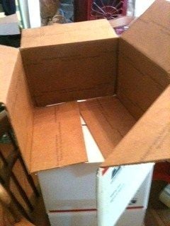 3* I took a large Priority Mail Box and cut one side of the box in a seam. This is so I can fit the box into another large Priority Mail Box, thus giving me double walled strength. This will give 4 layers of cardboard (4 x's the strength) on both top and bottom of the box.