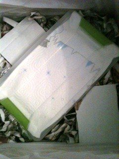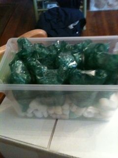 5* Then I added crumpled newspaper around everything to absorb shock and I added it to the top of the box which is about 3-4 inches deep. If you look closely, you can see the air holes that I punched in the top of the box. There are about 12 holes total on the lid.