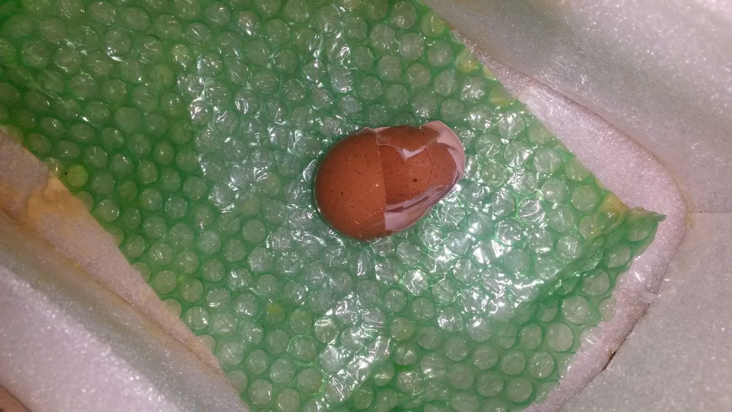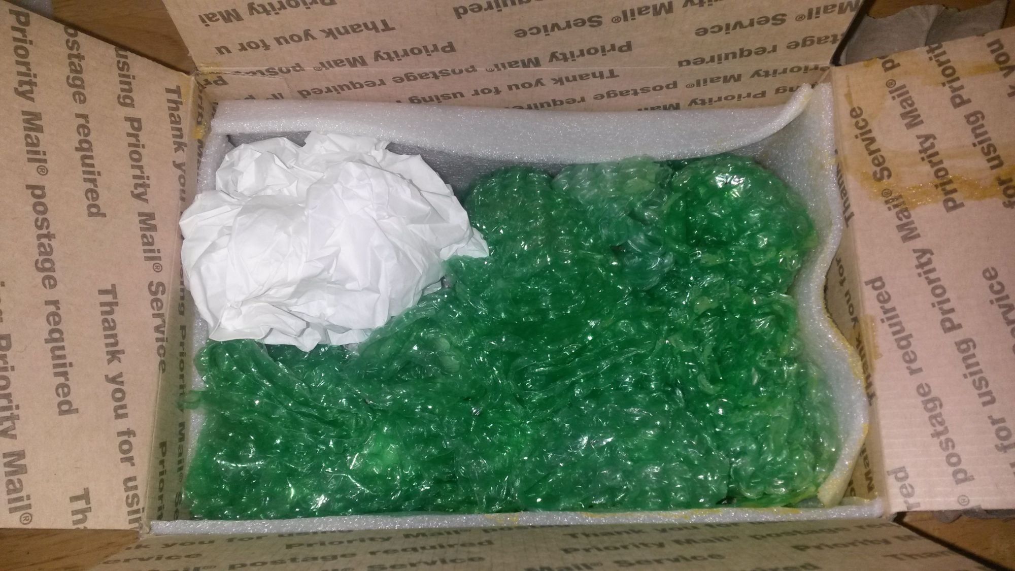 The one broken egg and the others ok is what makes the burrito wrapping a good way to pack!Delivery today! Ugh, turns out that the regional box A fits in my mailbox if it's turned sideways and forced (phone was charging, so no photo). Box looked good, though--no dents or anything (I'd had a photo of the unopened box, but I hadn't thought to cover the addresses.)