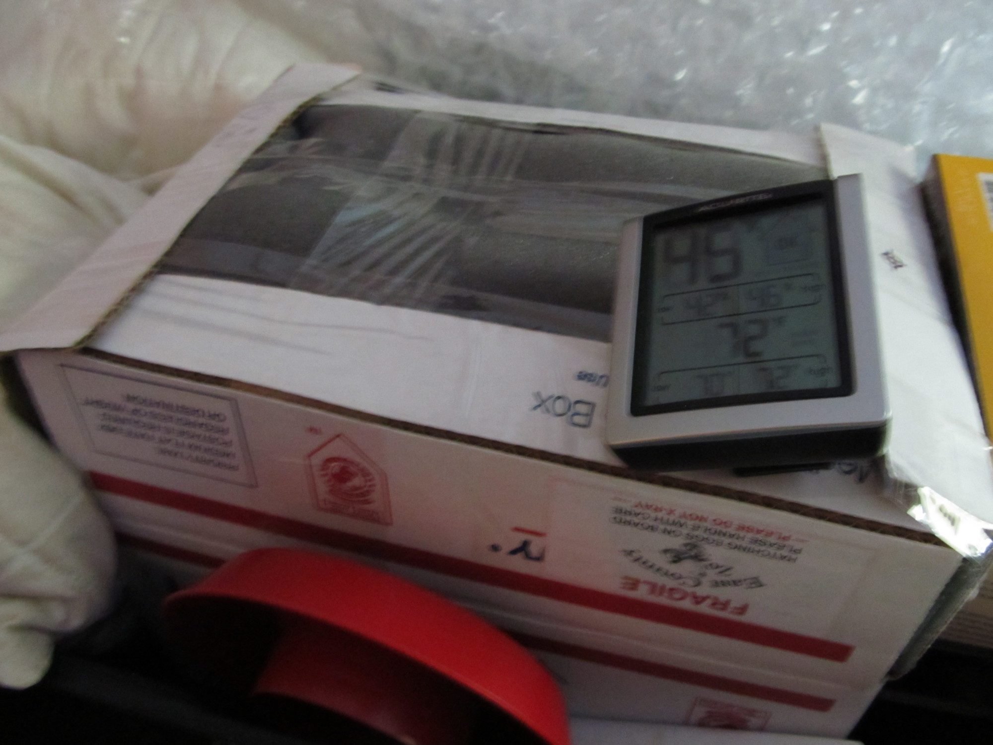 it should be able to see the outside world through a hole in the box.Hmmmm. Maybe we need to figure out how to send a video camera with an egg shipment. I wonder what they do to cause scrambled eggs... is it turbulence on an aircraft? Those conveyor belts with rollers shaking them up? Bouncy trucks? And what causes the saddle shaped aircells? Is it dramatic pressure changes like in take off and landing? Or are our boxes turned upside down? What can be done for shock absorbsortion or pressure protection?