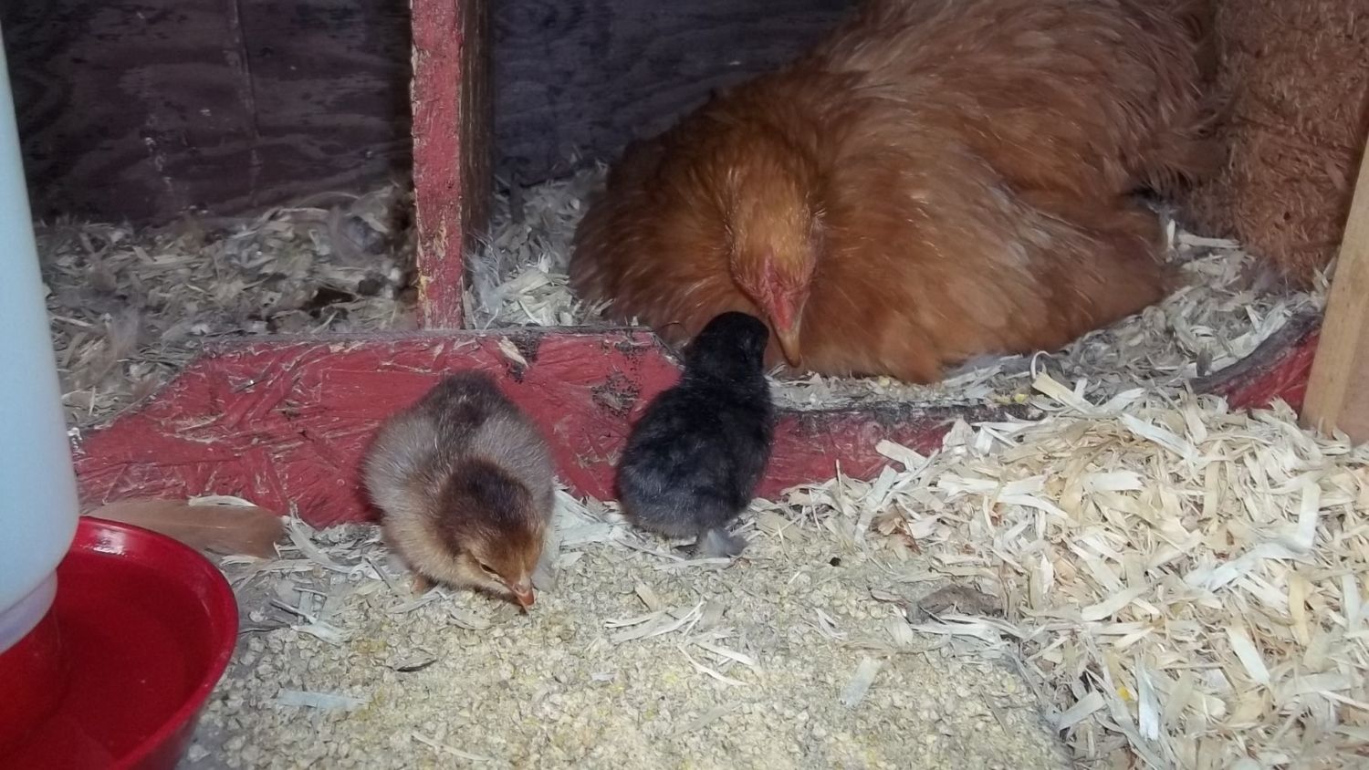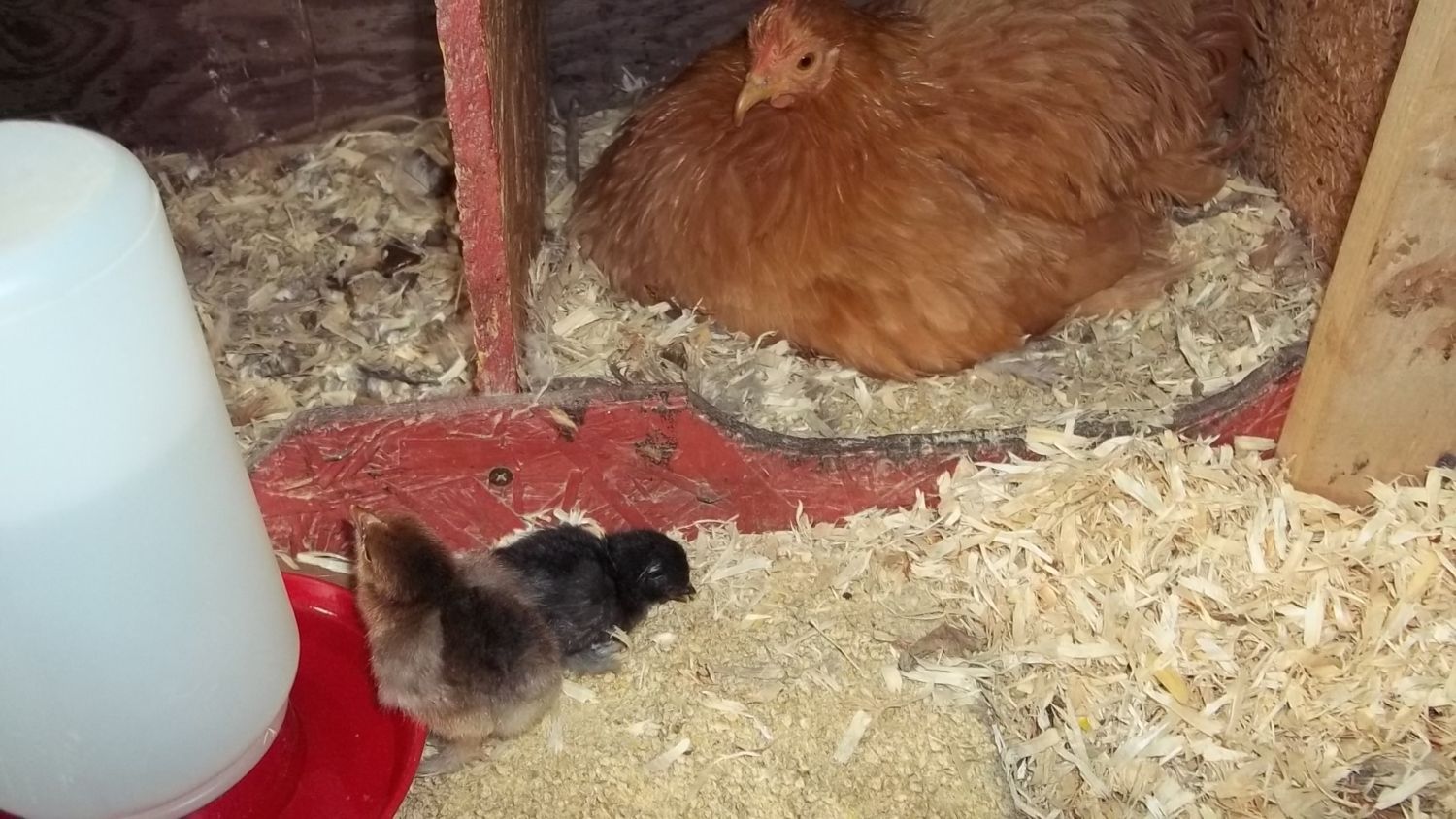 Took them out to coop last night to put under the broodie (poor thing has been broody for two months) Here are some pictures This is the mama and she is saying,I woke up this morning and guess what?I had two babies under me and I only had one egg!Do I look surprised?You bet I was!