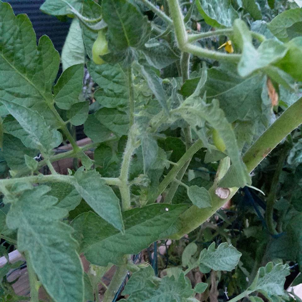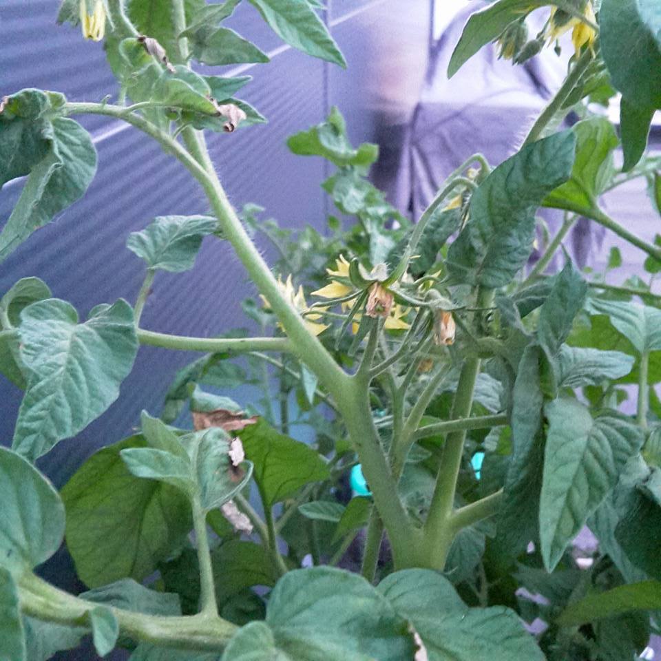 The large pruned Roma VF has one branch that is browning, probably accidentally broke it or something when I was doing the pruning. None of the plants are showing shock, and several are fruiting at a steady rate.