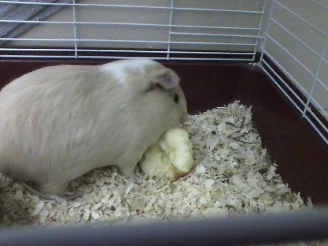 My first guinea pig was my P.E.W. (Pink Eyed White)/Albino Snowball. She passed away from old age and an illness & apparent locked jaw right around Thanksgiving of 2014.