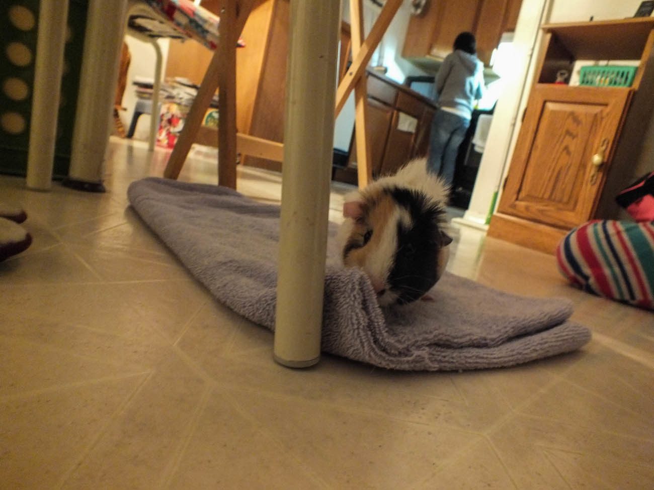 I forgot to mention, the gray & white curly haired one went to one of my friends who also owns the daddy guinea pig. This is him now.