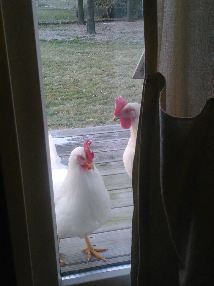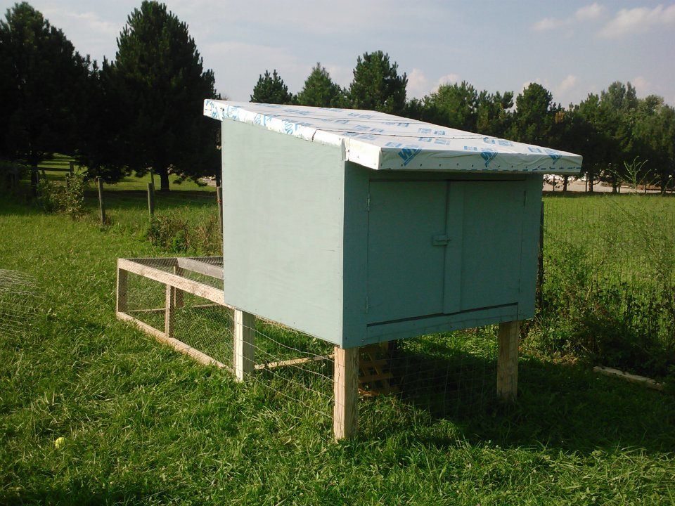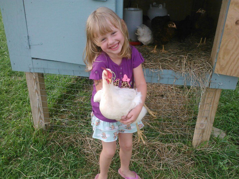 I had chickens as a kid and have spent my whole adult life trying to get back to that lifestyle. Last spring my husband, daughter and I moved up to a little farm in PA and got busy! In July with the help of my father in law we built a little 4x4 coop and painted it the same blue as our house. My inlaws' chickens live in Cluckingham Palace. Our coop is built for safe confinement, not luxury.