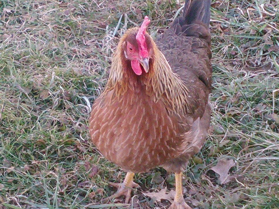 The chickens came from my inlaws' flock. We chose eight birds; seven little pullets and one who had just begun laying. From the start, the oldest was in charge. She is also the friendliest of all our birds, and will let my daughter pick her up. Before the others grew up and she bonded with them, WE were her flock. She ignored the others and followed us around like a dog. She's a TSC hybrid of some kind, maybe a Tetra Tint? Anyway she is funny and fearless. Meet Ladybird.