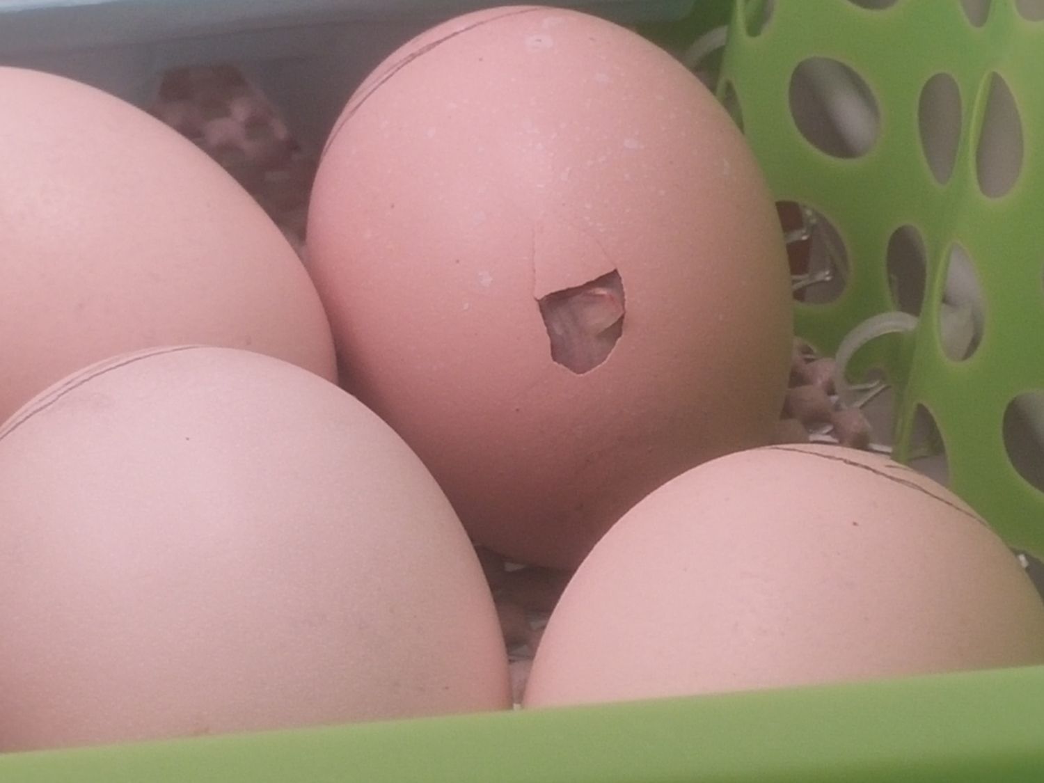 And so it begins. I had a feeling my eggs would follow suit of the last two batches, and hatch a day early. This evening is day 19, and I have a pip!!!
