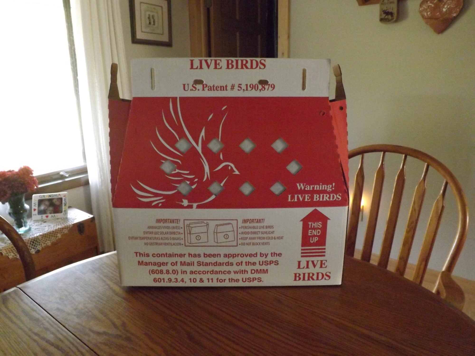 When Mandy references the leg band color, I check my chart. Their left toe punch is their sire and they both had the same sire. The leg band was put on to help me see, without picking them up, who their dam was, i.e., their right punch. Those are temporary, loose fitting zip tie bands, which will soon need to be cut off and replaced with permanent legs bands, if Mandy so wishes.Some photos for you, Fred, of the blue banded cockerel (first photo), white banded cockerel (second photo) and the two pullets. Love these little birds! The blue cockerel has an incredibly huge keel - gives him that nice brick shape. He's doing better with roosting on a real roost rather than the top of a nesting box.![]()