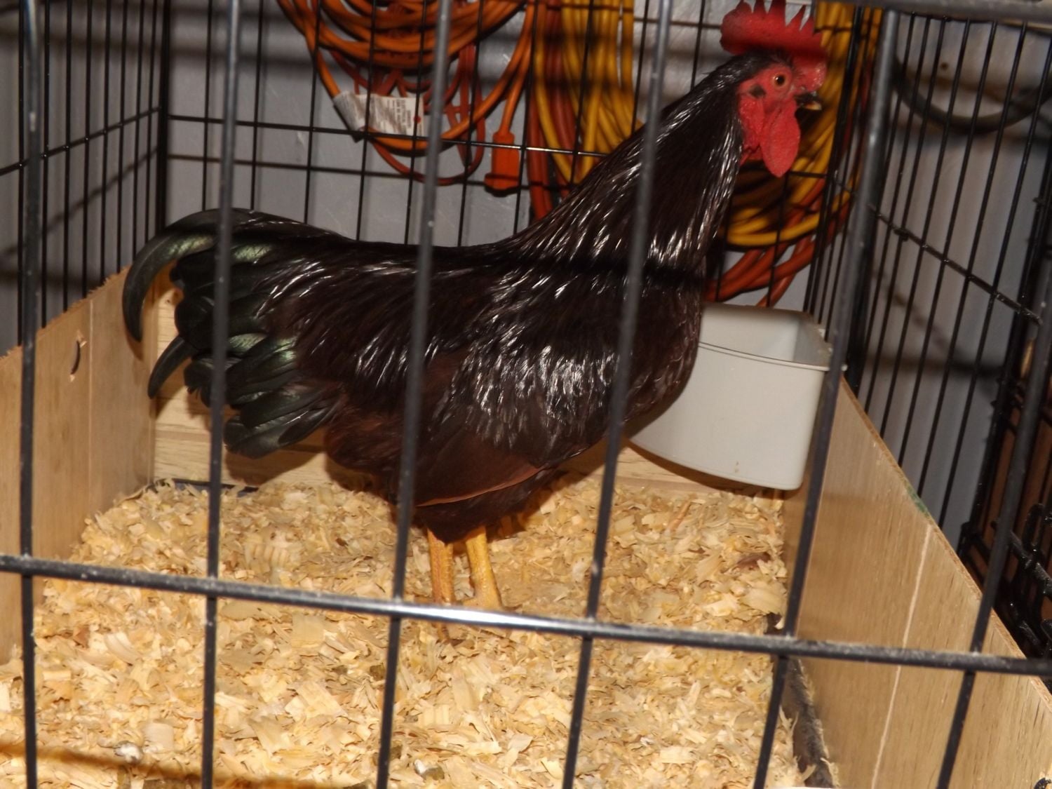 Some photos for you, Fred, of the blue banded cockerel (first photo), white banded cockerel (second photo) and the two pullets. Love these little birds! The blue cockerel has an incredibly huge keel - gives him that nice brick shape. He's doing better with roosting on a real roost rather than the top of a nesting box.![]()