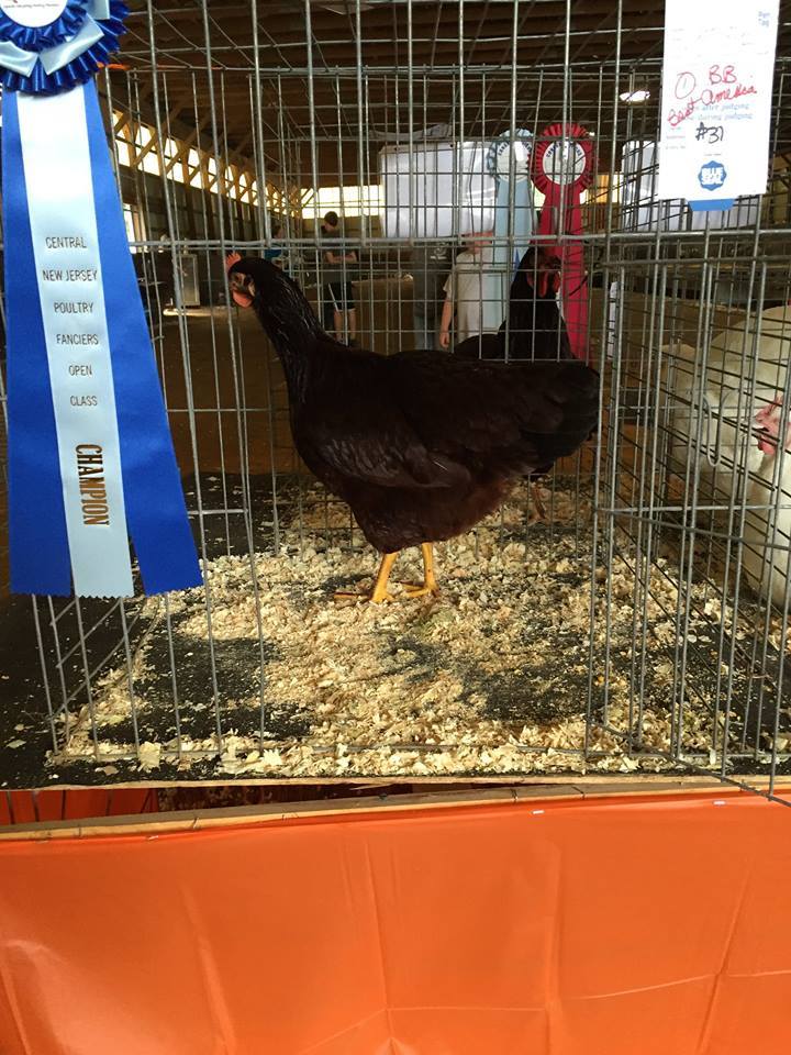 I went to that show yesterday too. My RIR hen placed RB and Reserve American behind Toni's. Mine went on to win Best Jr. Large Fowl and Best in show Jr. overall. Hers was very nice to see in person. I can definetly tell why hers beat mine, her pullet was in a class of her own. A lot of nice bantam reds there too.Central New Jersey Poultry show yesterday. It's a small show with small classes but another good showing by Heather and Laura and my friend, Toni Candea, and secretary of the Red's club. Ch Am with a very young pullet. I told Toni I really like this pullet and hope she continues to finish well, as she must before the larger shows of the Ohio National and Knoxville. Good young female.![]()