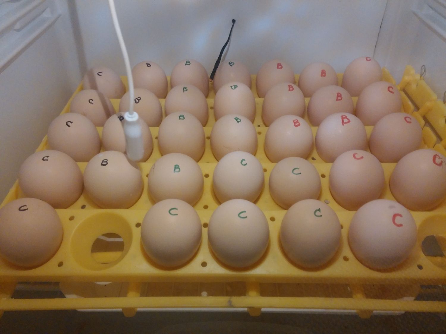 That is sooo cool. I love it. I hope you have a good Hatch. Some of the eggs I put in my incubator are around 2 weeks old because I send out the freshest and what's leftover goes into mine. Right now it's full so I cant put any more in until more hatch. They will be around 2 weeks old. I now have 3 more families to hatch from. A couple of months ago I finally got rid of the last of the males so the bachelor coops were converted back to breeding coops. I added nest boxes to them. I'm going to sell a few more pullets from last years hatch because I'm using 2 of the coops that I use for grow-out as breeding coops right now. Need to downsize to make room for the new youngsters. The chick coop has been converted to the hatchery.and brooder. it's pretty tight in there but I'm making it work. I hope to have a separate building next year for hatching and brooding. I have to go looking to find what I want then start saving for it.