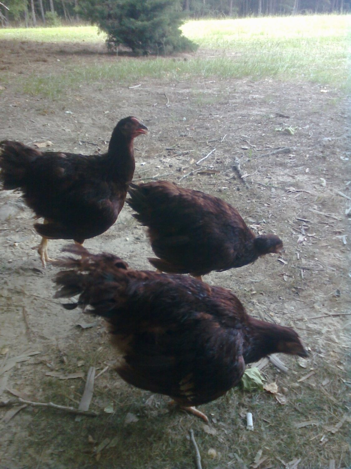 Our large grow-out pen has all the chicks we are growing out for next years breeders plus our flock of RC RIRs. Friday night late I shut the coop up to catch some extra cockerels that I was hauling to a sale about daylight Saturday morning. After caging them and loading them in the horse trailer I went to bed and forgot to open the coop back up. When I got home Saturday morning, I ran out and opened it up so they could get some water and find some bugs.