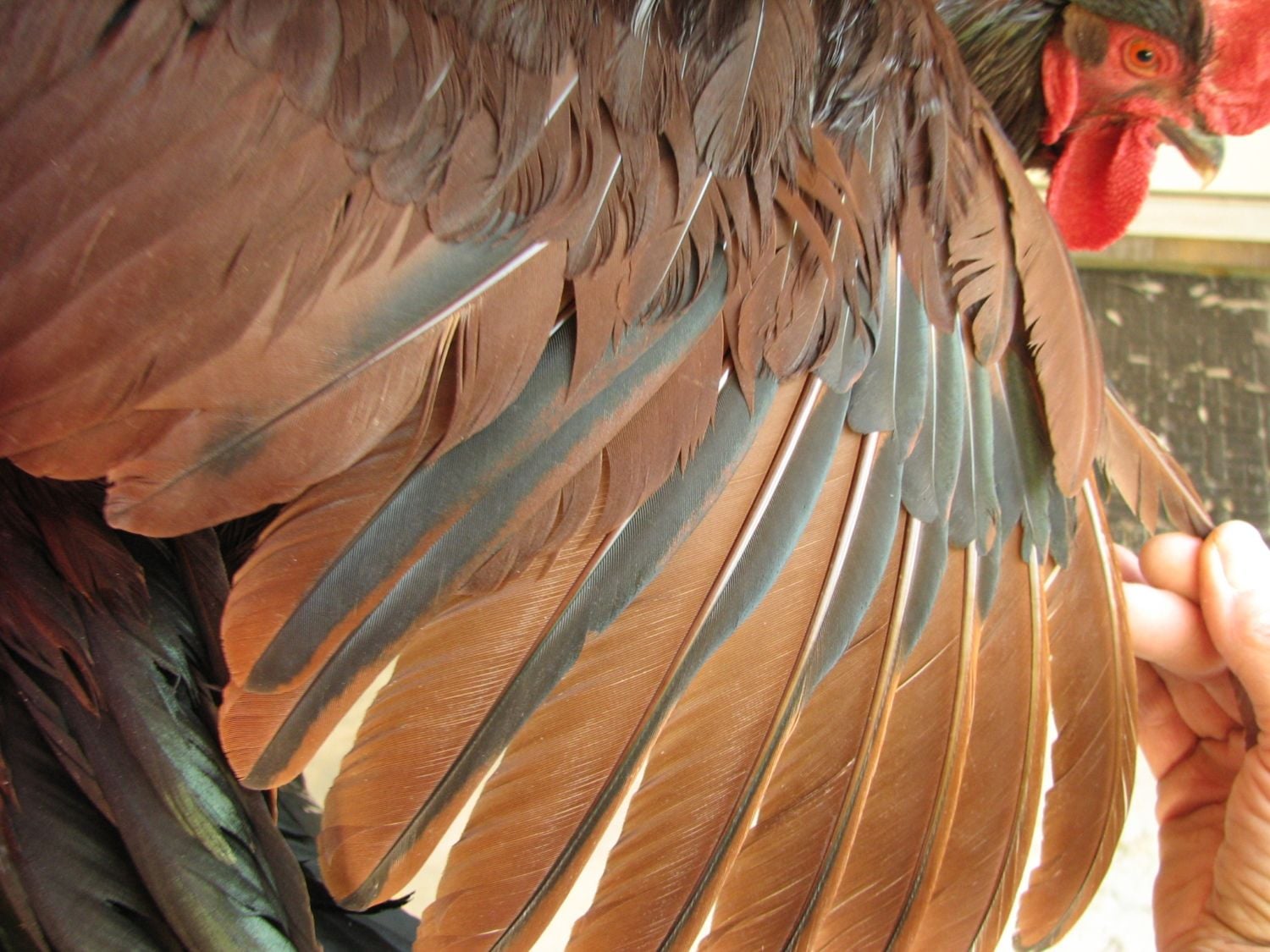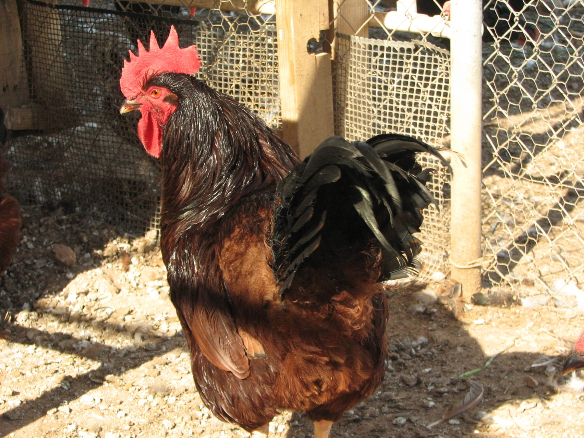 Hi Bob and anybody else who cares to comment. I got 12 RIR chicks from Matt1616 earlier this spring, they are now about 8 months old. I only ended up with 2 cockerels. Would like opinions on them. Nos. 94 and 95. No. 94 beat out 8 other cockerels at the recent Tucson show, people thought he looked good. But he bites! He seems to have an attitude which hasn't been fully tested with a flock of pullets yet since I took him out in preference to the non-biter. No. 95 is just a tad heavier, doesn't look to have the feather quality of the other one, but he was second in line when they were both together plus maybe the pullets are picking at his feathers? I like his comb better, yes I know that doesn't count for much. I would like one of these as my main breeder and keep the other as a spare. Or with 10 pullets, I could breed some to both and see how that turns out. I just don't want mean birds, so leery of No. 94. I just started reading this thread from the beginning. So much to learn...thank you, Bob, for starting it.
