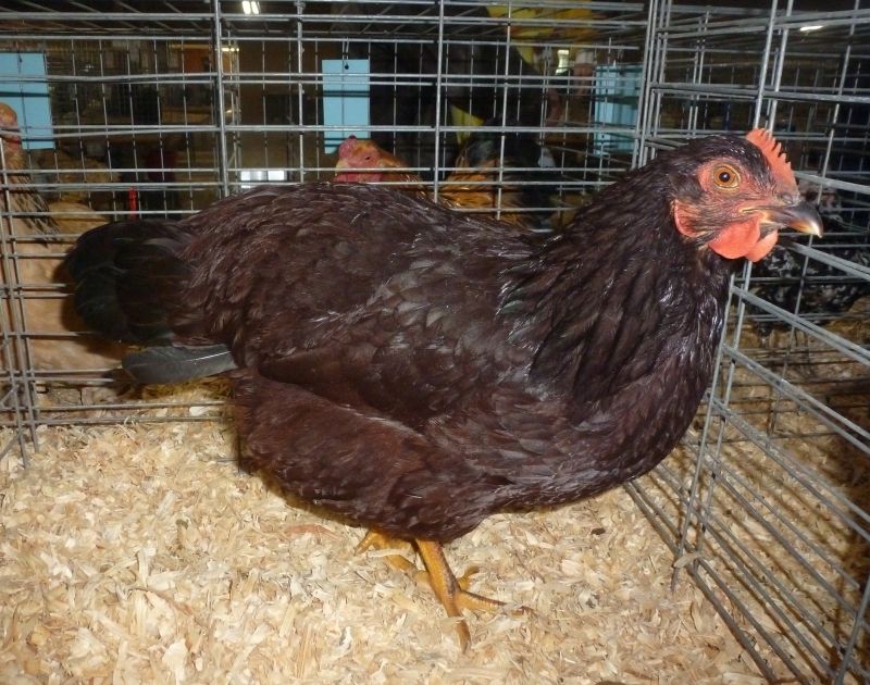 She looks like she has nice black tail feathersHi all! My daughter is in her third year of 4-H poultry, and has decided to start breeding RIRs. We're starting with a young lady from the Gary Underwood line. Here's a picture of her at the 2012 EIPA junior show. She's not got quite enough black on her wing feathers, but how does she look for a starting point? She's a little washed out from the flash. She started laying about 2 weeks after the show, so she's still pretty young in this picture.