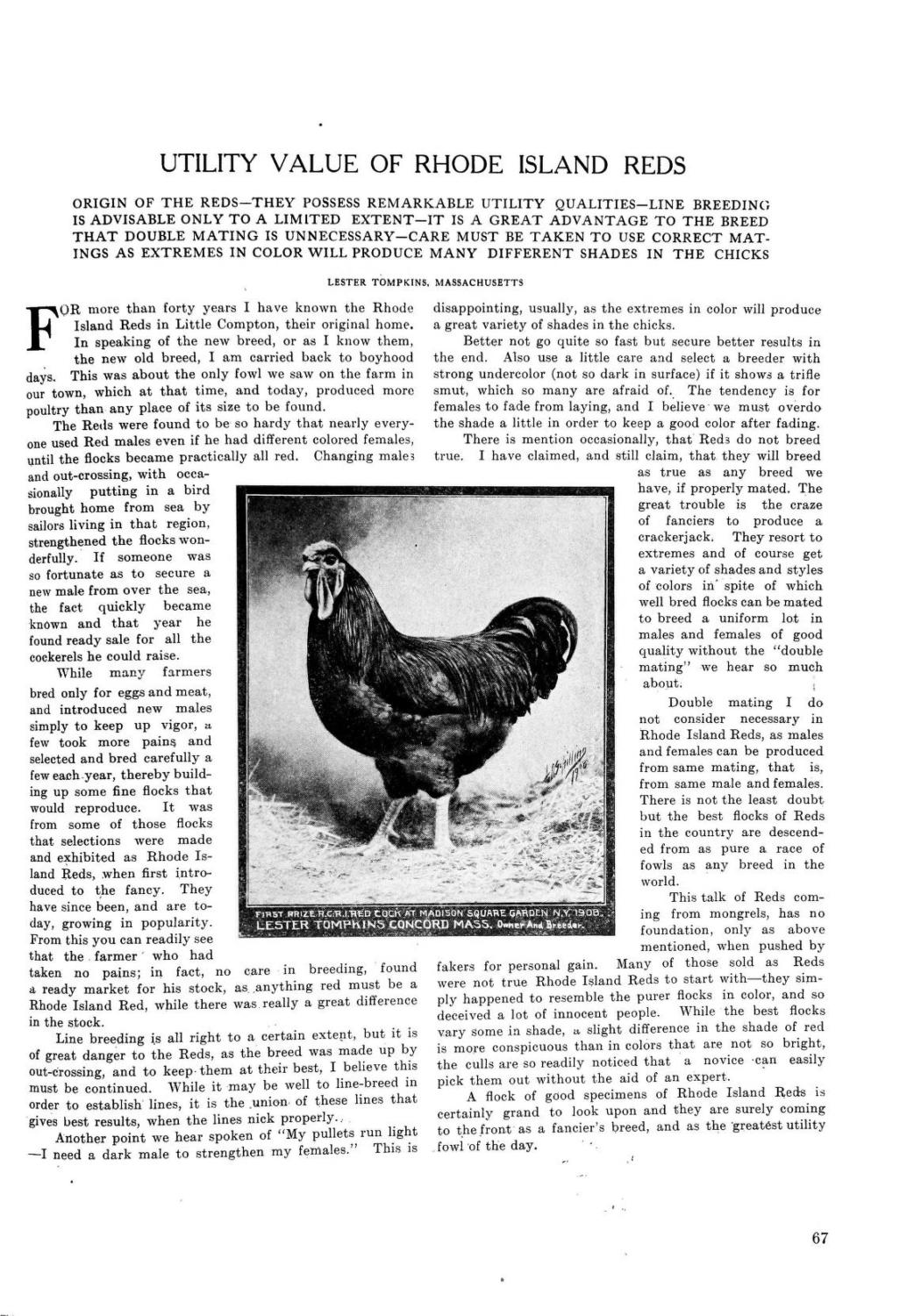 Many don't like it when I write this but its a fact JACK. Out of all the Rhode Island Red Club members who join the red club in ten years there may be two to four who stick with them. In twenty years you may have two. The rest do not have them or got out of them because the messes up in their breeding program or had no plan.