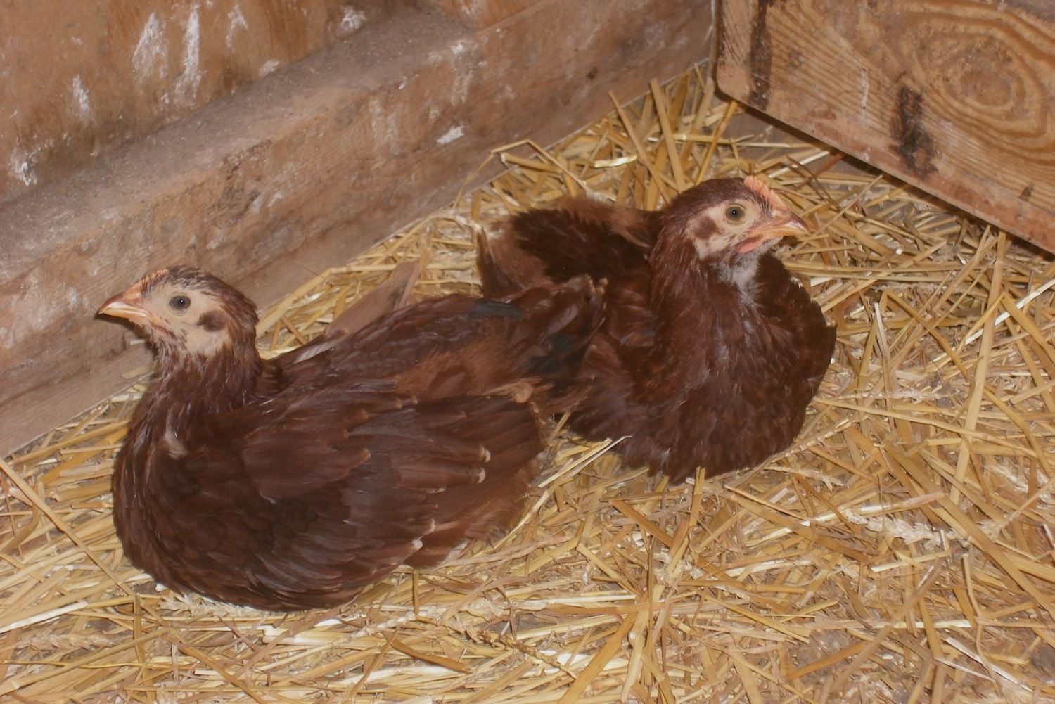 In not quite sure if I'm posting in the right place but I'm looking g for help with my Rhode Island Red. We have 2 hens about 1 year old and one is full and dark and beautiful and the other is a bit scrawny and her feathers are super light colored, some even have white tones to them. I can't figure out what's wrong with her and am looking for any advice. We also have 2 Barred Rock hens who are doing fine but they both have small bald spits on their backs near the tail. Any thoughts?