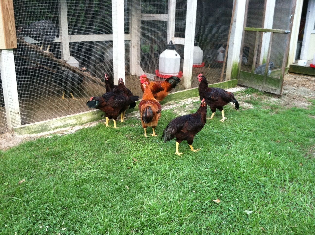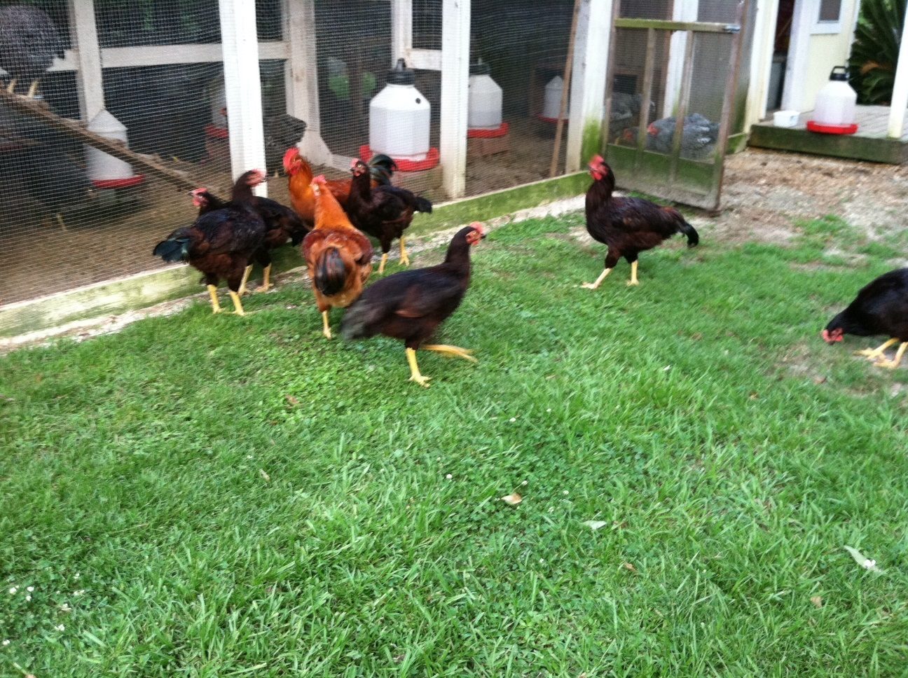 Not the best pics but I took them with my phone! I can't wait to see what they look like in a few more months, and all these birds are right at 4.5 to 5 months old. If the Reds grow into their legs I'll be happy, lol!!!!