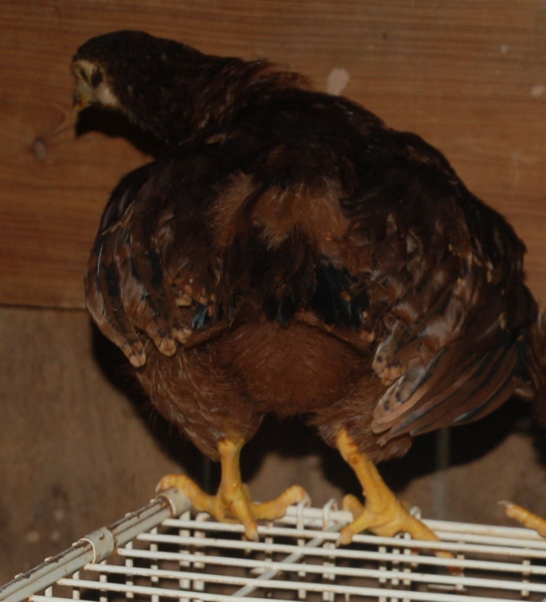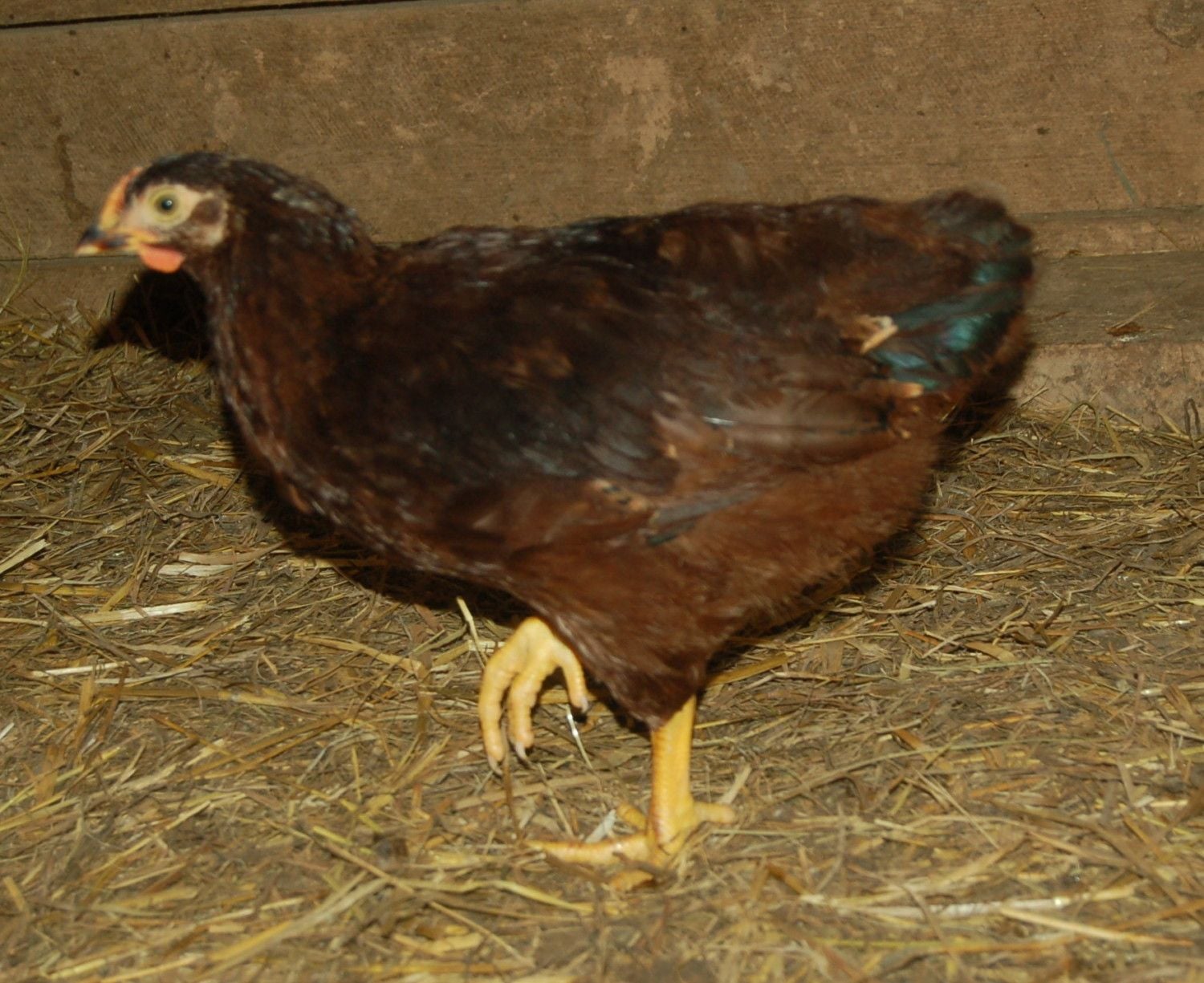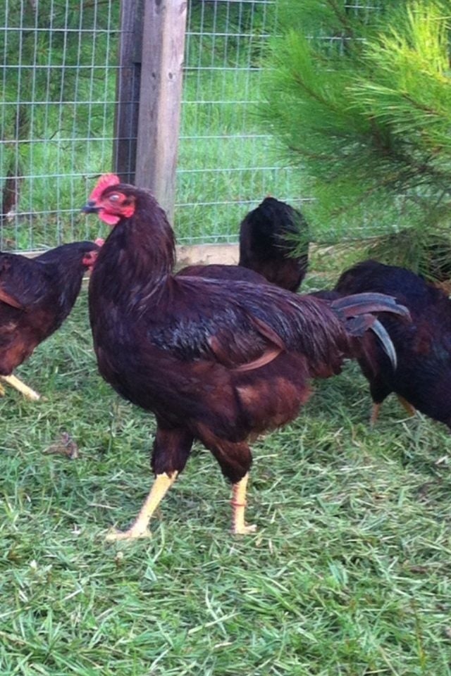 This is no big deal. Actually kind of nice. But I notice my Heritage Delawares starting to crow. They are months younger than my HRIR. My 2 cockerels look like the one above. But have never heard them crow yet. Just found it strange I never heard them crow yet for being so big.