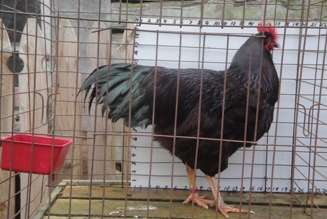 1 Okay, what I'm going to say is going by my RC. This boy has nice brick shape, nice length and straight back, looks like he will have good tail set, I'm not saying anything about leg color because I know what happens with pictures. Appears to have good wing carriage and is showing good color for coming out of molt. I think he will turn out to be a good one.