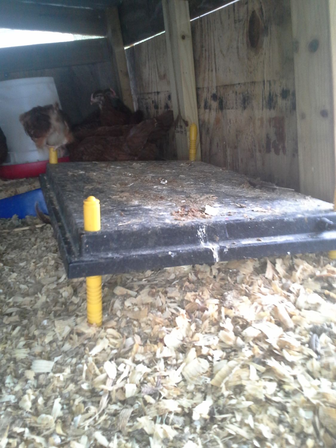 The heat plate which you can see they use the top of it more then under it now. This is the large heat plate which is for 50 chicks but after 10 or so days they mostly use the top and sleep around the edge of it. I lower the back legs so it is at an angle so smaller chicks can go to the back for warmth and larger chicks go to the front. It works more like a hen would. They only go under when they need to get a quick warm up. I love the heat plate, no more heat lamps and fear of fires.