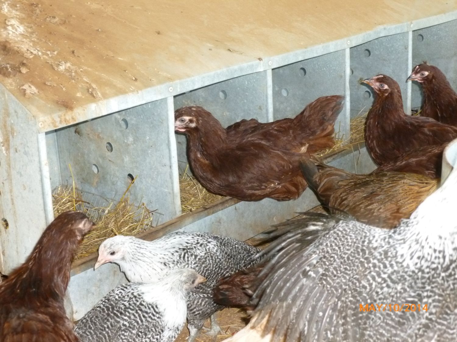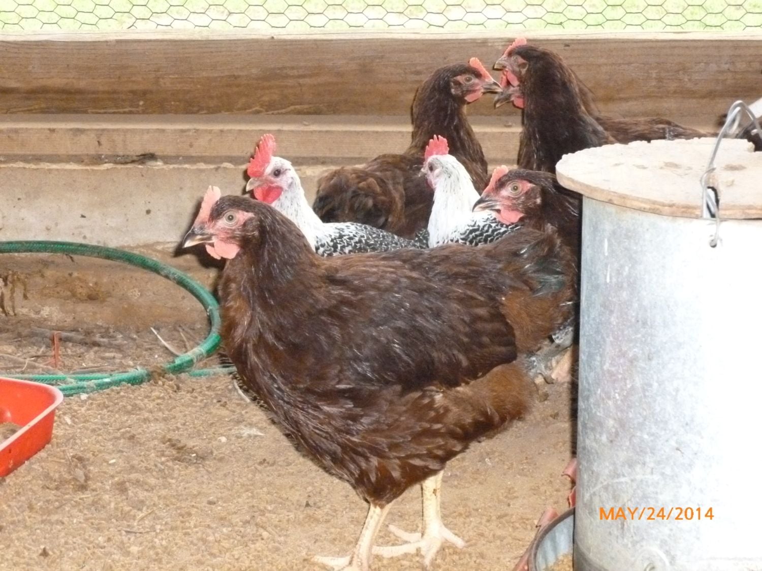 good starters for us. As the years go on and we learn more about genetics and breeding we would love to have true breeds. Not the mass production. Good learning experience. Yes, we will enjoy our birds and the eggs. Thank you for your information! Hope you don't mind if I read along and enjoy the pictures...Not necessarily a dominance thing on the pullet Angie. It is just a maturing thing. As you go along with these birds, you will find that each clutch of young that you raise, you will find different things with them. This is what makes raising them so much fun. There is loads of info and pic's on my page that you can see a lot of different stages that they go through. A lot of the questions that you will run into can be answered on there. Don't worry over what you have, very few of us started out with the better birds. One reason being that up until the last few years there weren't as many around as there are now and folks didn't seem real free about shipping eggs/chicks as they are now. Enjoy what you have, the hens will be super layers. One thing, IF you happen to have a male in there which it looks like they are all pullets but just in case, be careful with the cockerels as they mature because most of the production red males DO get very aggressive with humans. Have fun with the hobby and your children should enjoy them also.About how old does a RIR Roo start to grow his comb And wattle ? Does the domonit pullet grow a slightly bigger comb and a slightly redder face? I asked cause I have 3 girls about. 9 weeks and one is has just a slightly redder face and comb. She also yeasts our older Roo and hens.