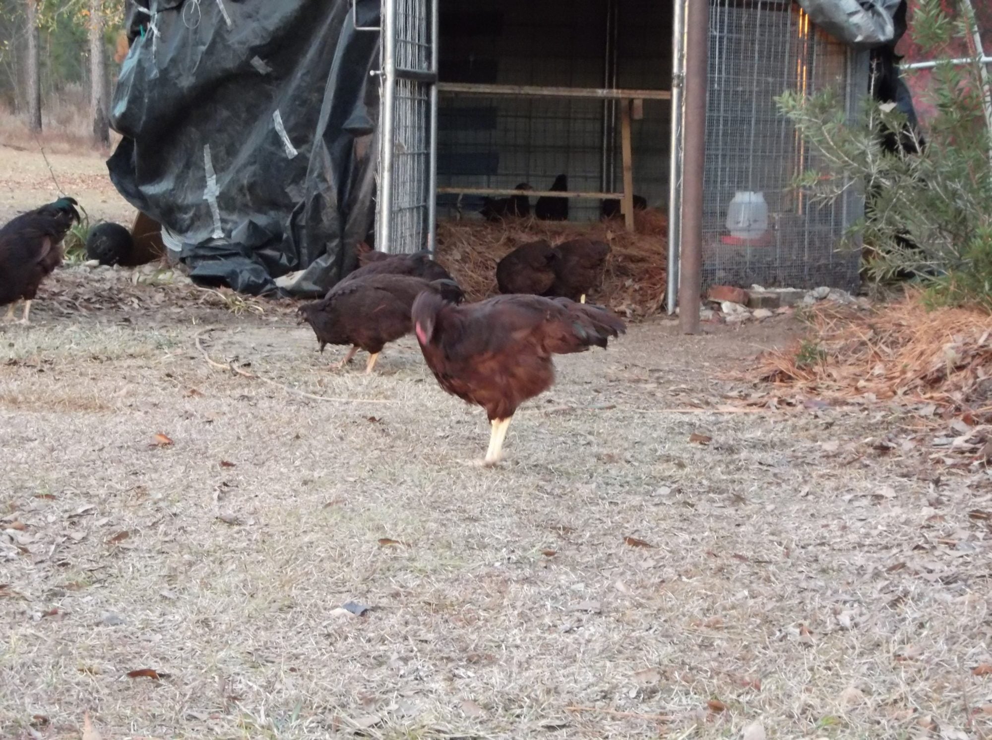 Matt I'm going to put a couple pix of my RIR's on here and was wondering if you could tell me how they look. I was TRYING to get a pic of the cockerel when he was standing with his head up and about the time I went to snap the pic he went down with his head.