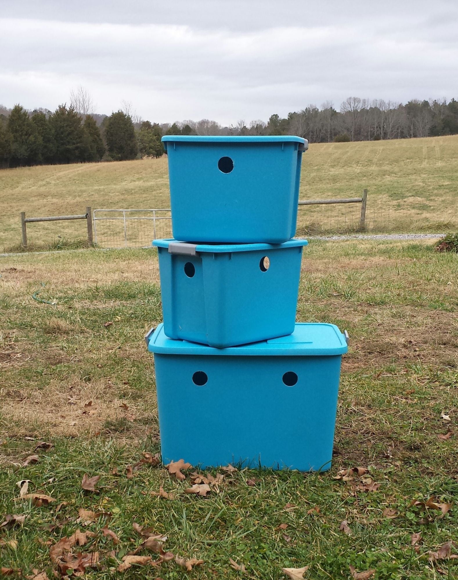 Since mine are coming to Knoxville in an uncovered utility trailer, I had to build some boxes more substantial. Same hole saw idea, but need to cover mine, as there appears to be many hours of driving in rain predicted.