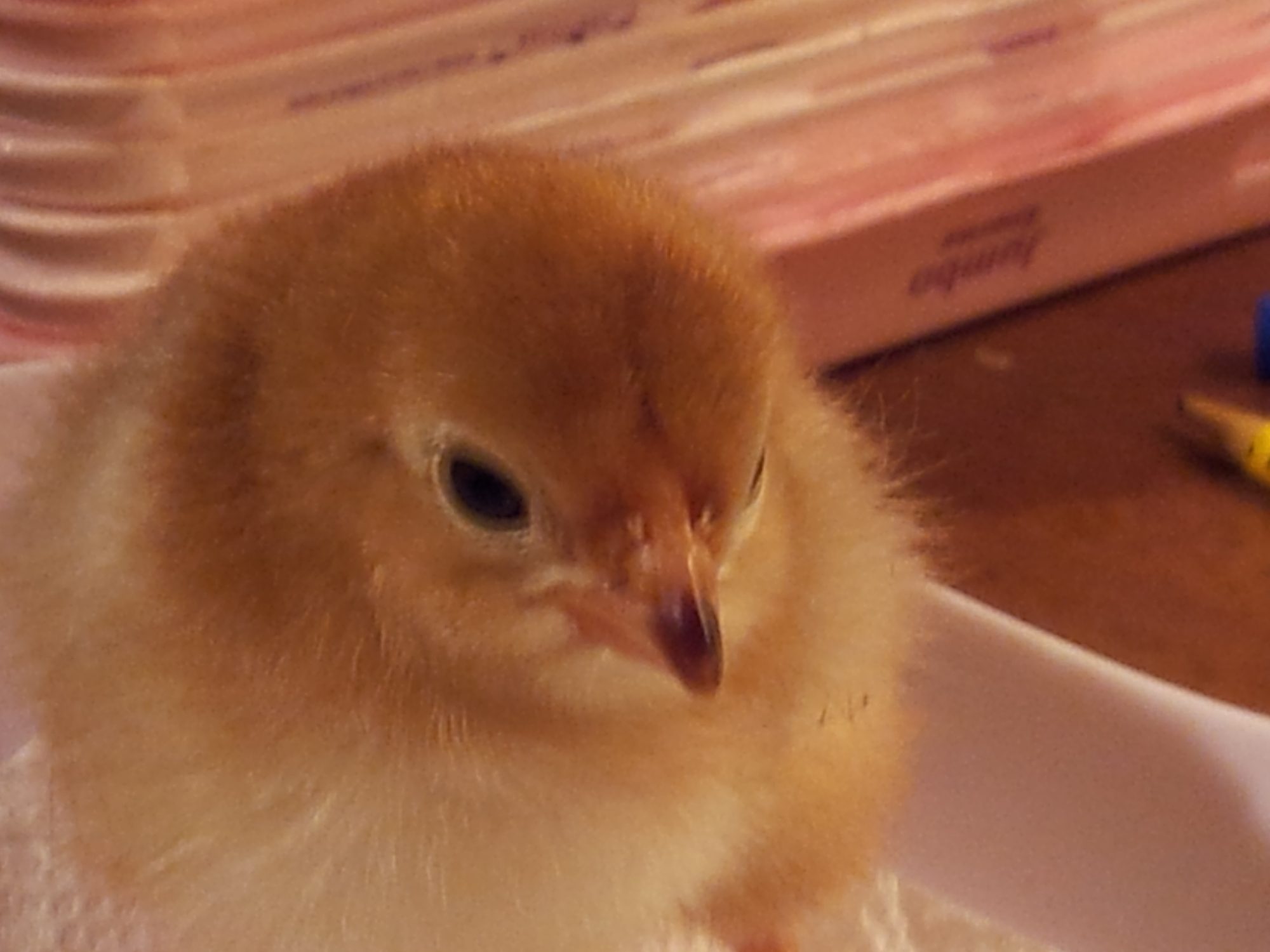 Here are a couple of pictures I just took. One of a day old Rose Comb RIR and the other a SC RIR. They didn't want to pose for their pictures.Question for the experts: